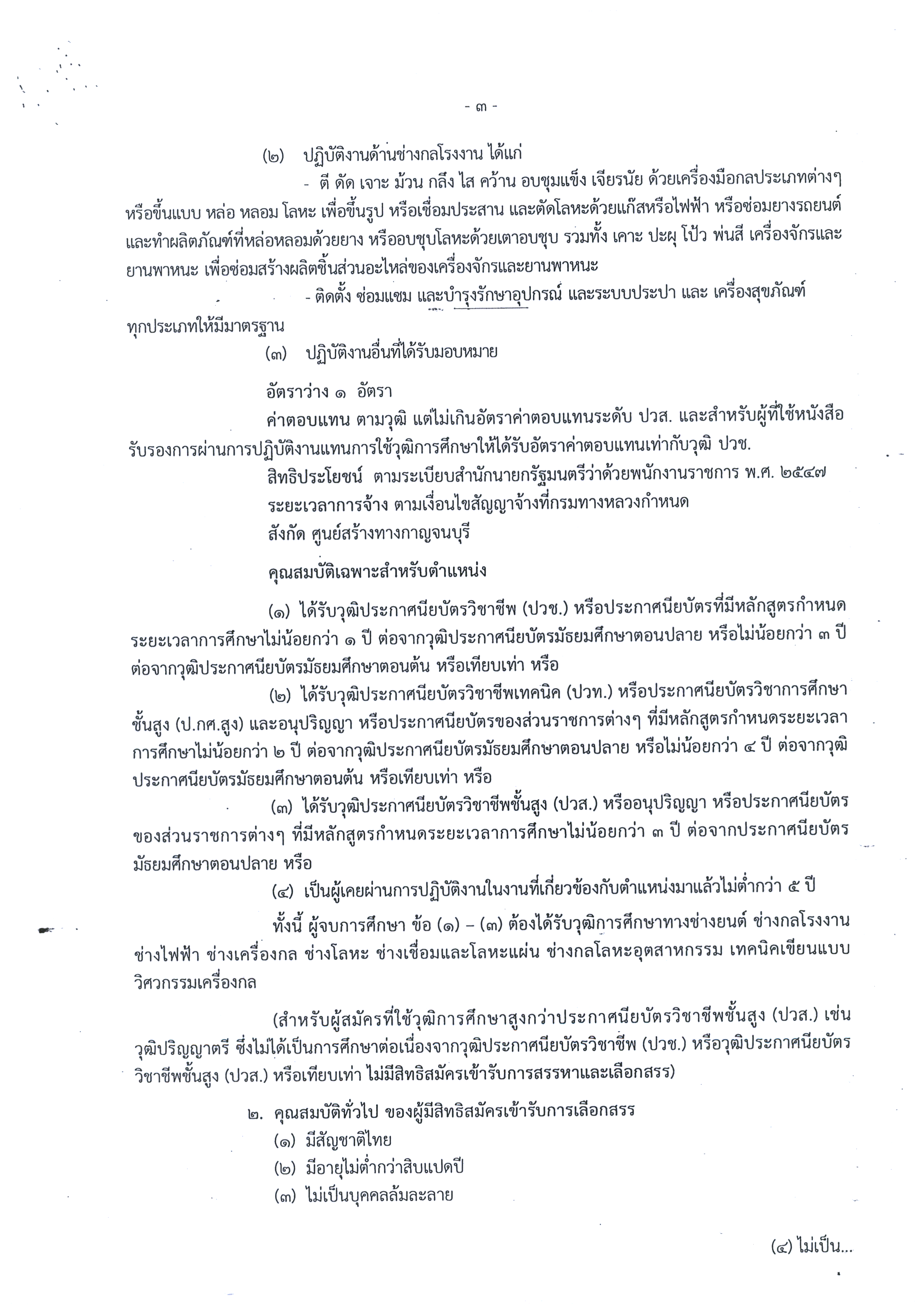ด้วยกรมทางหลวง ประสงค์จะรับสมัครเพื่อจัดจ้างเป็นพนักงานราชการทั่วไป สังกัด ศูนย์สร้างทางกาญจนบุรี สำนักก่อสร้างทางที่ 2