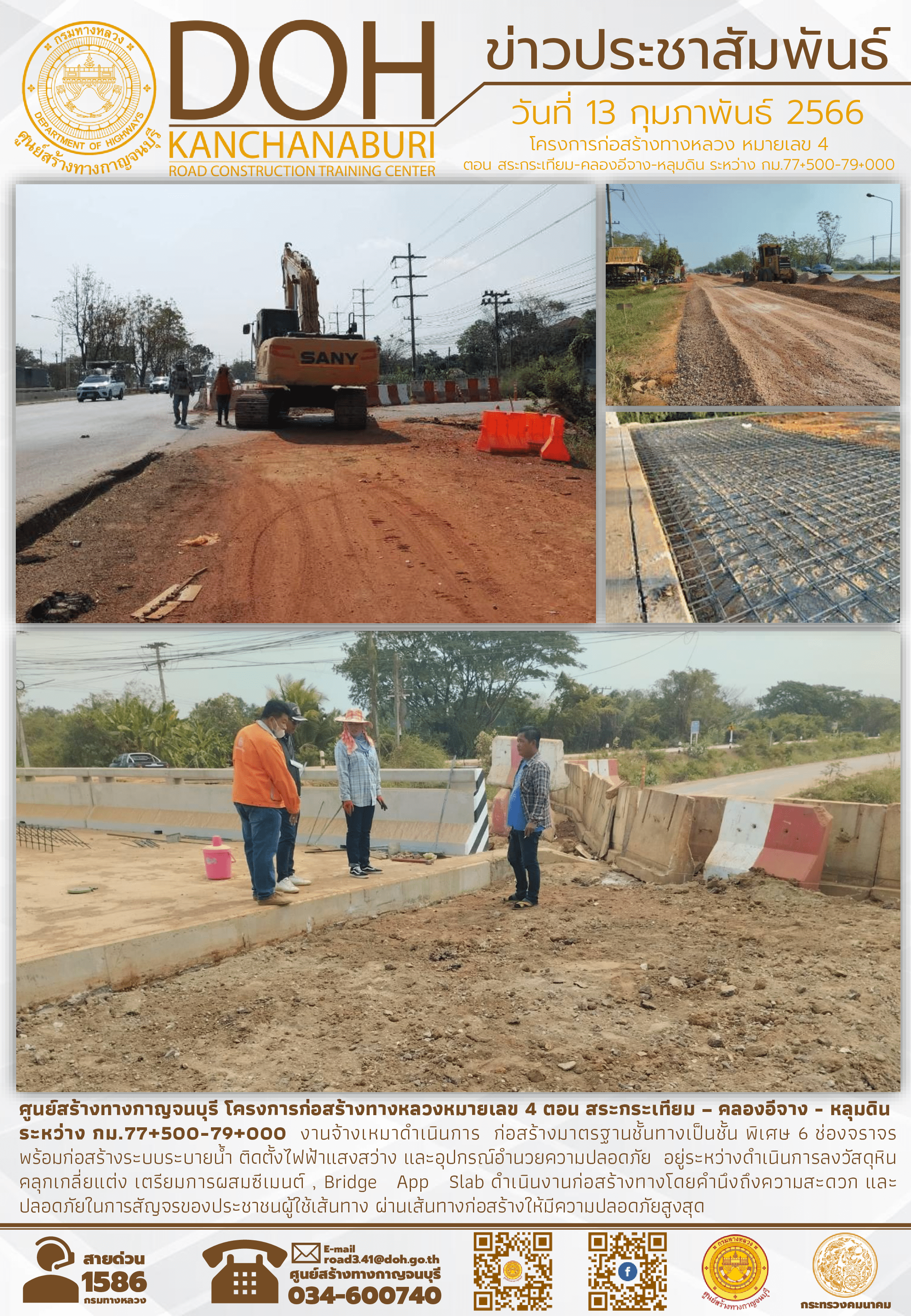 ศูนย์สร้างทางกาญจนบุรี โครงการก่อสร้างทางหลวงหมายเลข 4 ตอน สระกระเทียม-คลองอีจาง-หลุมดิน ระหว่าง กม.77+500-79+000