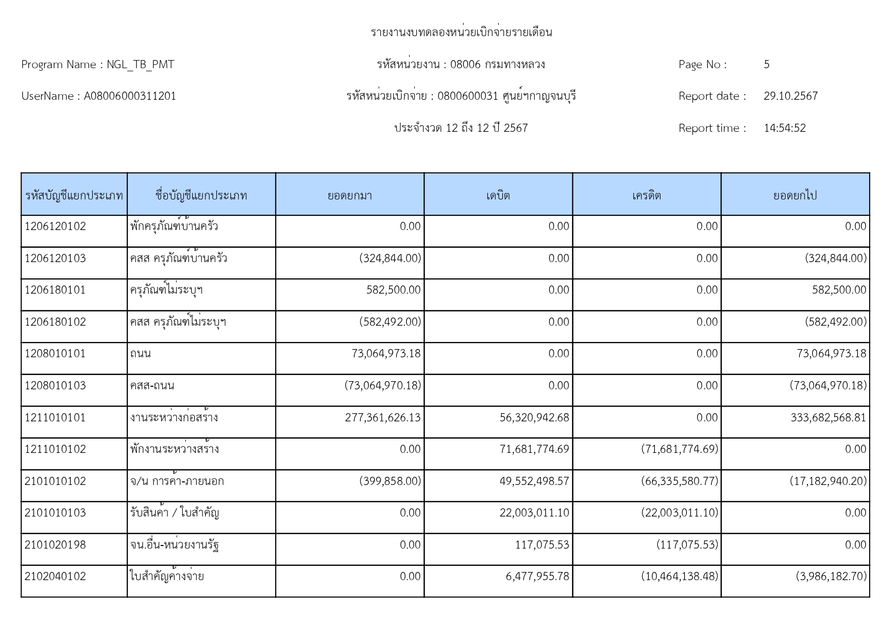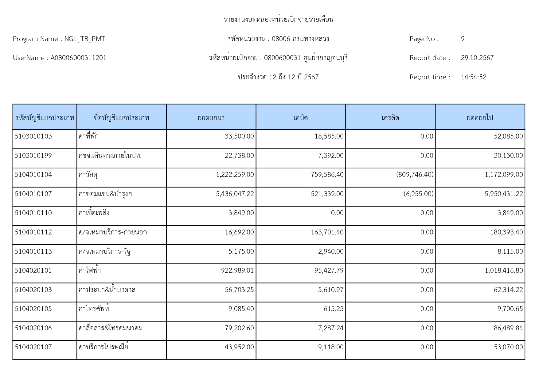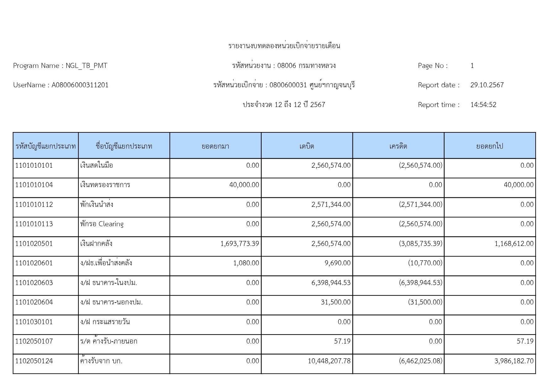 ข้อมูลข่าว : รายงานงบทดลอง เดือน กันยายน 2567
