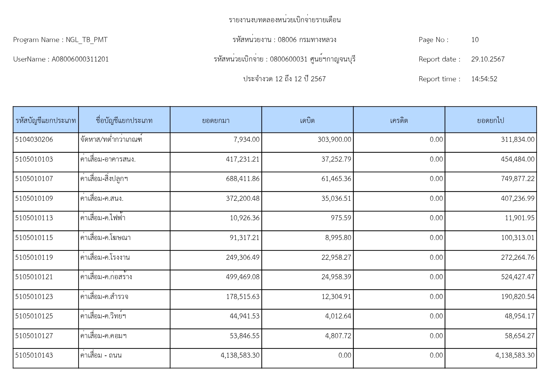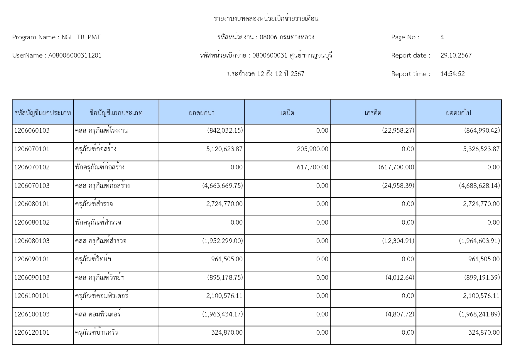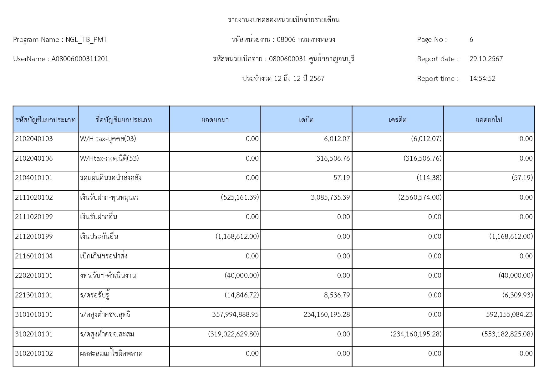 ข้อมูลข่าว : รายงานงบทดลอง เดือน กันยายน 2567