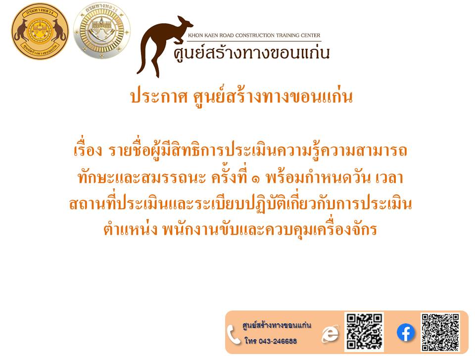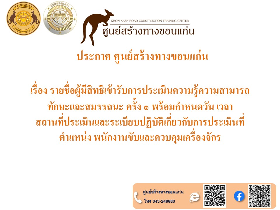 ประกาศศูนย์สร้างทางขอนแก่น วันที่ ๑๗ มิถุนายน ๒๕๖๗ เรื่อง การขึ้นบัญชีและการยกเลิกบัญชีผู้ผ่านการเลือกสรรเพื่อจัดจ้างเป็นพนักงานราชการทั่วไป ในตำแหน่งพนักงานขับและควบคุมเครื่องจักร