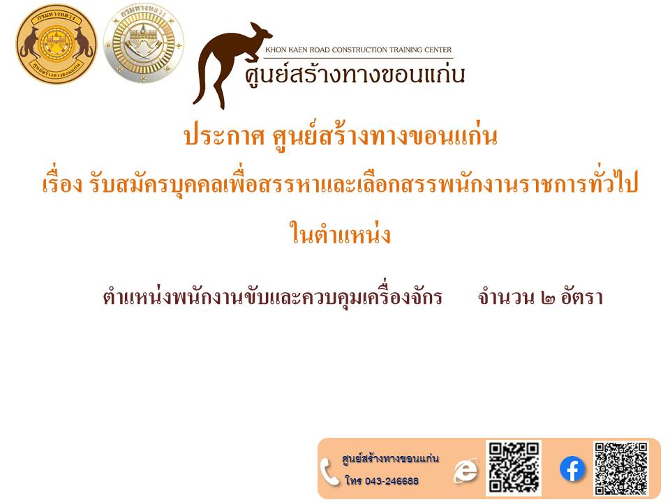 ประกาศศูนย์สร้างทางขอนแก่น เรื่อง รับสมัครบุคคลเพื่อสรรหาและเลือกสรรพนักงานราชการทั่วไป ในตำแหน่ง