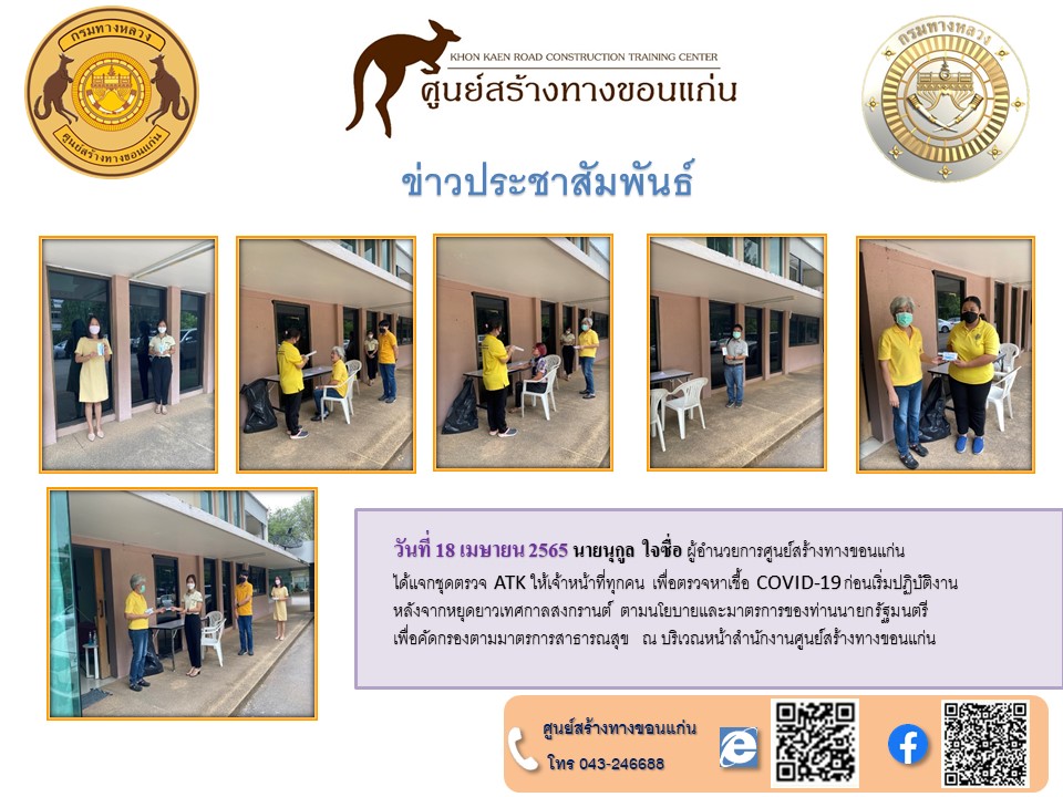 วันที่ 31 มีนาคม 2565 นายนุกูล ใจซื่อ ผู้อำนวยการศูนย์สร้างทางขอนแก่น มอบให้นายสมัคร ต้นโลห์ ผู้อำนวยการฝ่ายสำรวจและออกแบบ นายชาติชาย พรวนพิทักษ์ ผู้อำนวยการฝ่ายแผนงาน นายเจนวิทย์ จันทร์พยัพ ผู้อำนวยการฝ่ายตรวจสอบและวิเคราะห์ฯ