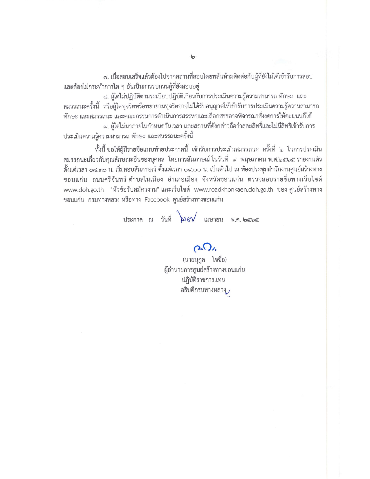 ประกาศกรมทางหลวง ลงวันที่ ๒๗ เมษายน ๒๕๖๕