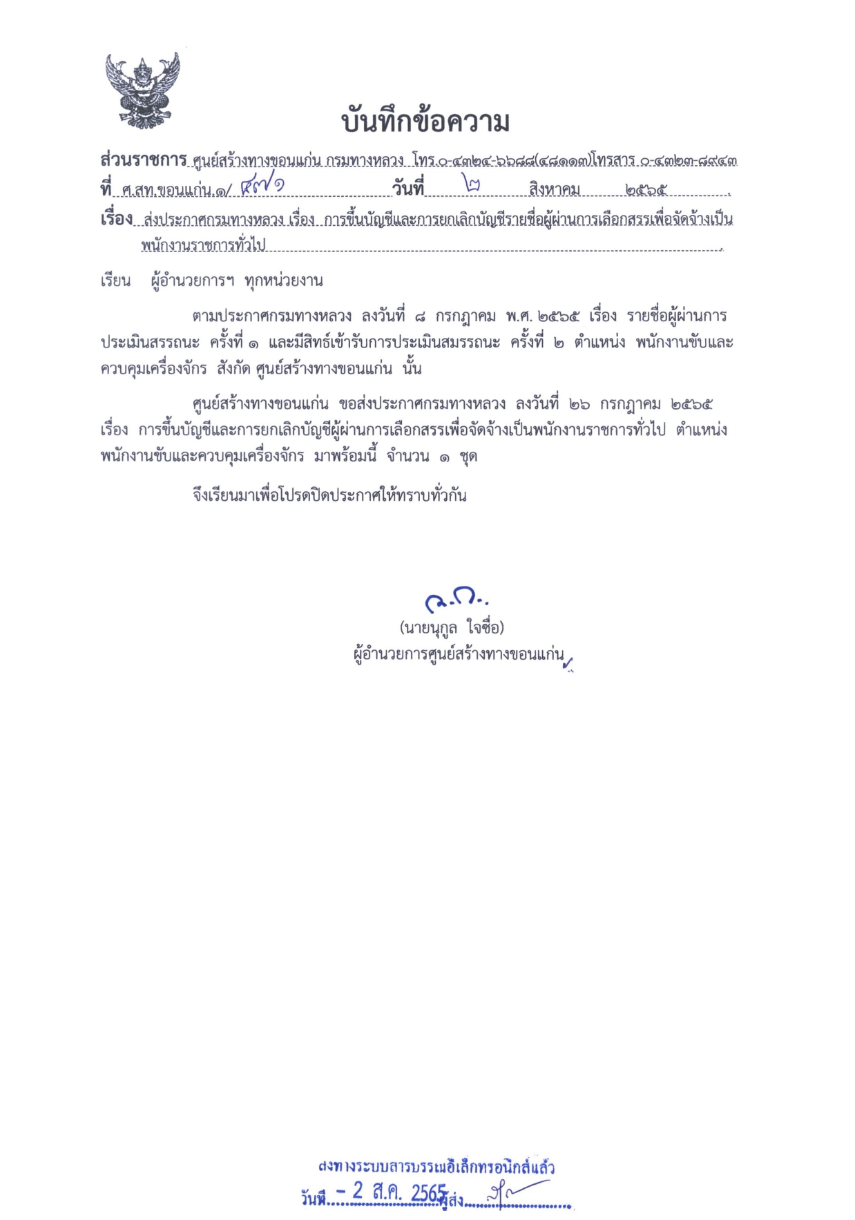 ประกาศขึ้นบัญชีและยกเลิกบัญชีรายชื่อผู้ผ่านการเลือกสรรเพื่อจัดจ้างเป็นพนักงานราชการทั่วไป