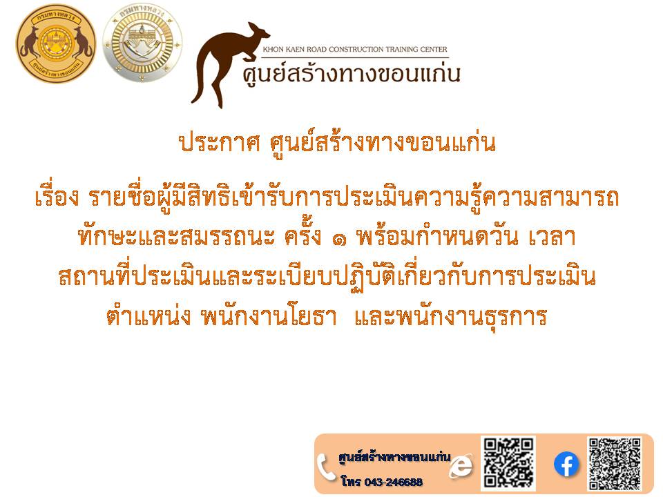ประกาศรายชื่อผู้มีสิทธิเข้ารับการประเมินสมรรถนะครั้งที่ ๑ และกำหนดวัน เวลา สถานที่ในการประเมินสมรรถนะ และระเบียบปฏิบัติเกี่ยวกับการประเมิน