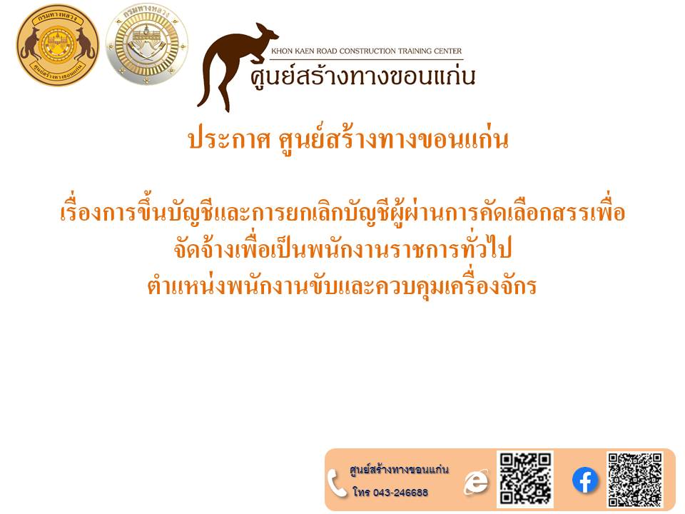 ประกาศขึ้นบัญชีและยกเลิกบัญชีรายชื่อผู้ผ่านการเลือกสรรเพื่อจัดจ้างเป็นพนักงานราชการทั่วไป