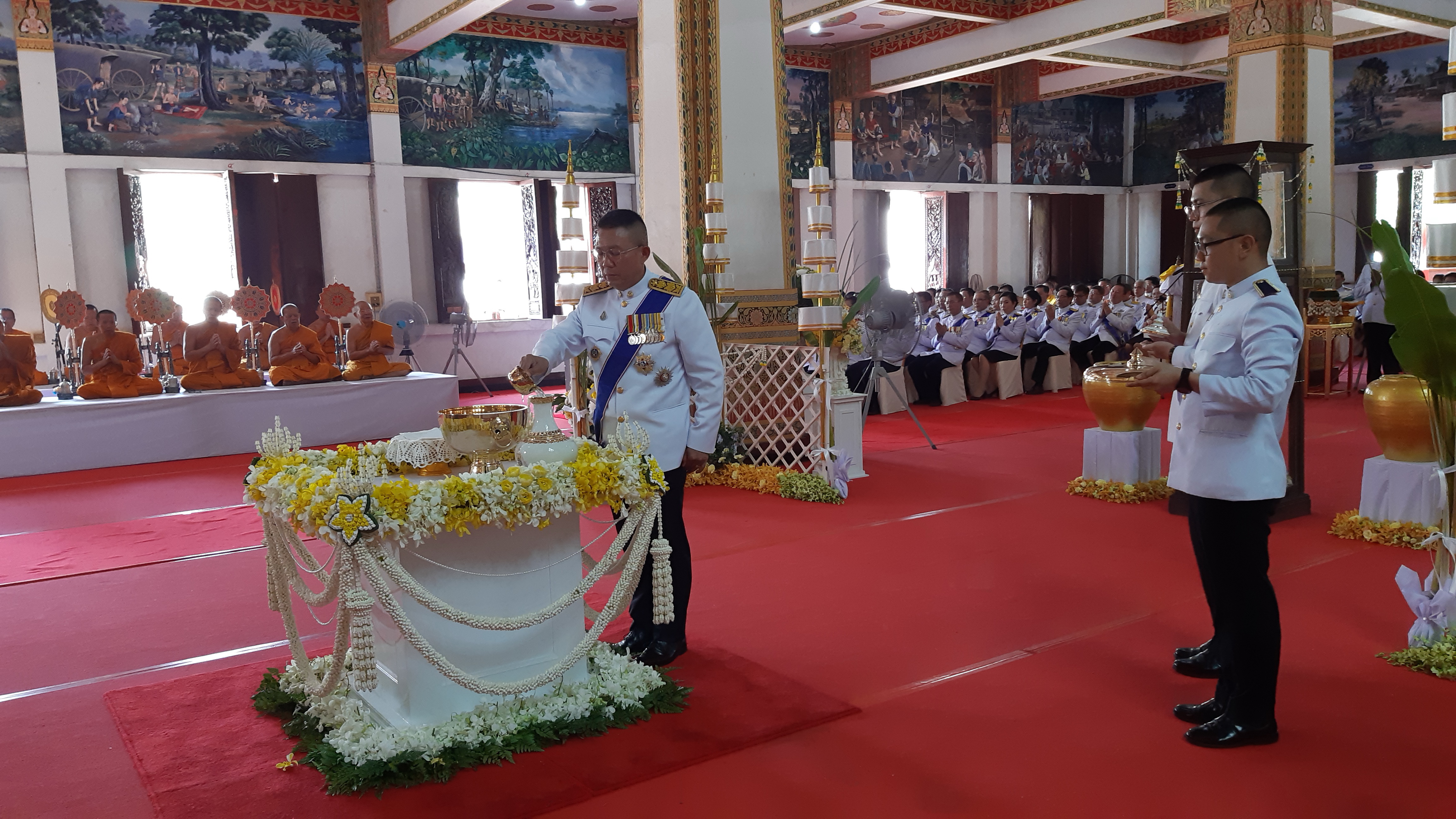 ข้อมูลภาพกิจกรรม : วันที่ 9 เมษายน 2562 เวลา 09:00 น. นายนุกูล ใจซื่อ ผู้อำนวยการศูนย์สร้างทางขอนแก่น มอบหมายข้าราชการ ร่วมพิธีเวียนเทียนสมโภชน้ำอภิเษก ในการพระราชพิธีบรมราชาภิเษก ณ พระมหาธาตุแก่นนครอนุสรณ์สาธุชน วัดหนองแวงพระอารามหลวง จังหวัดขอนแก่น