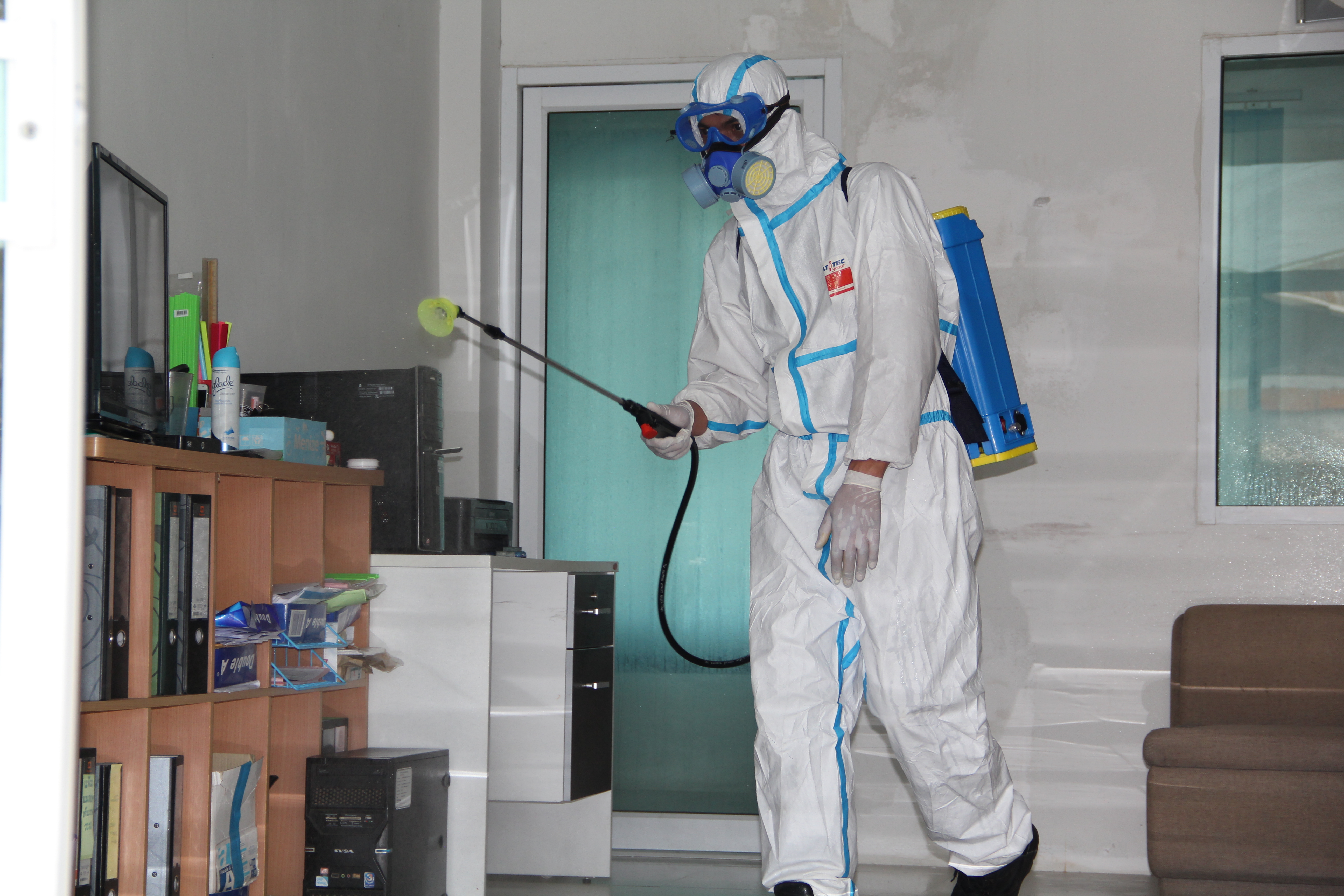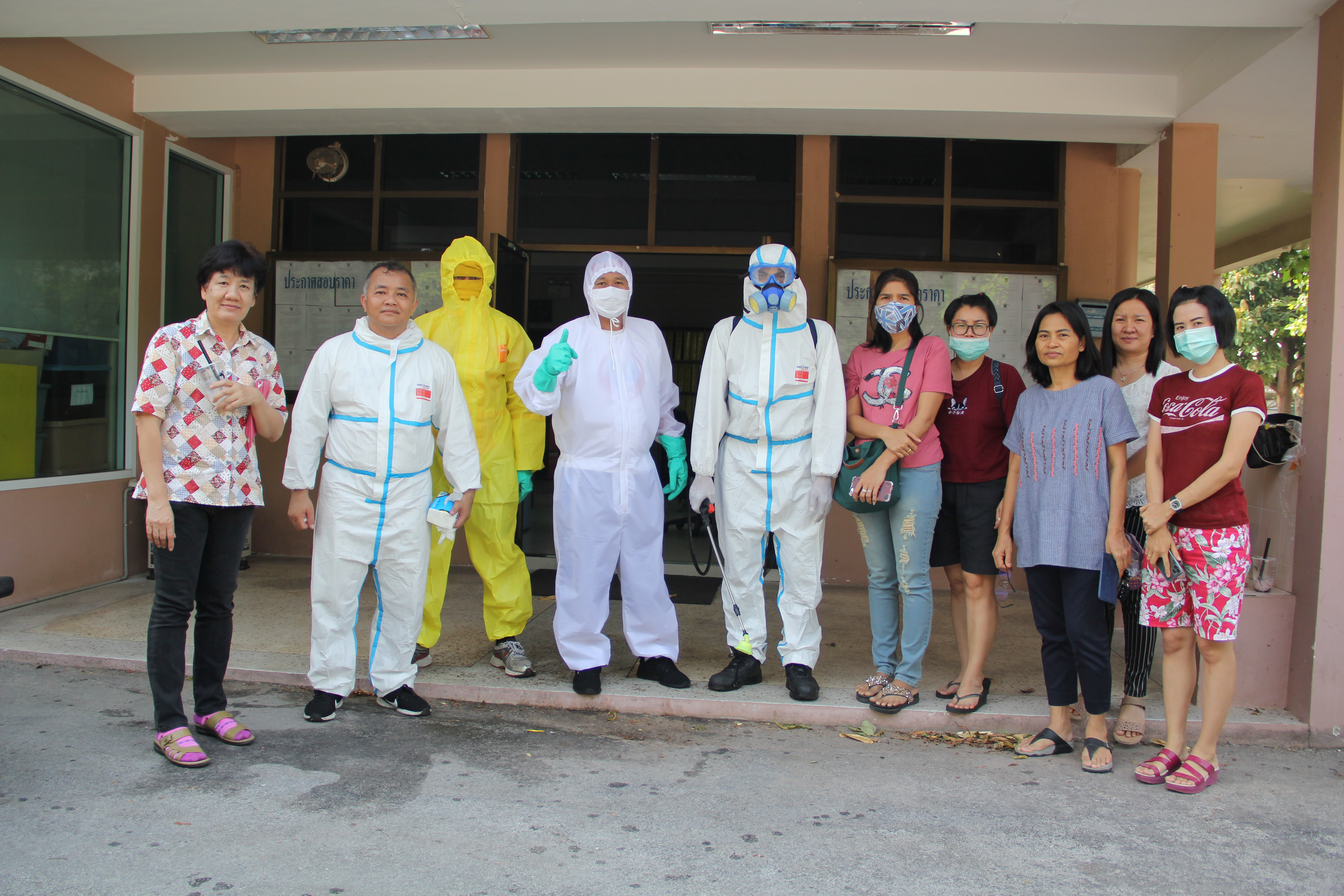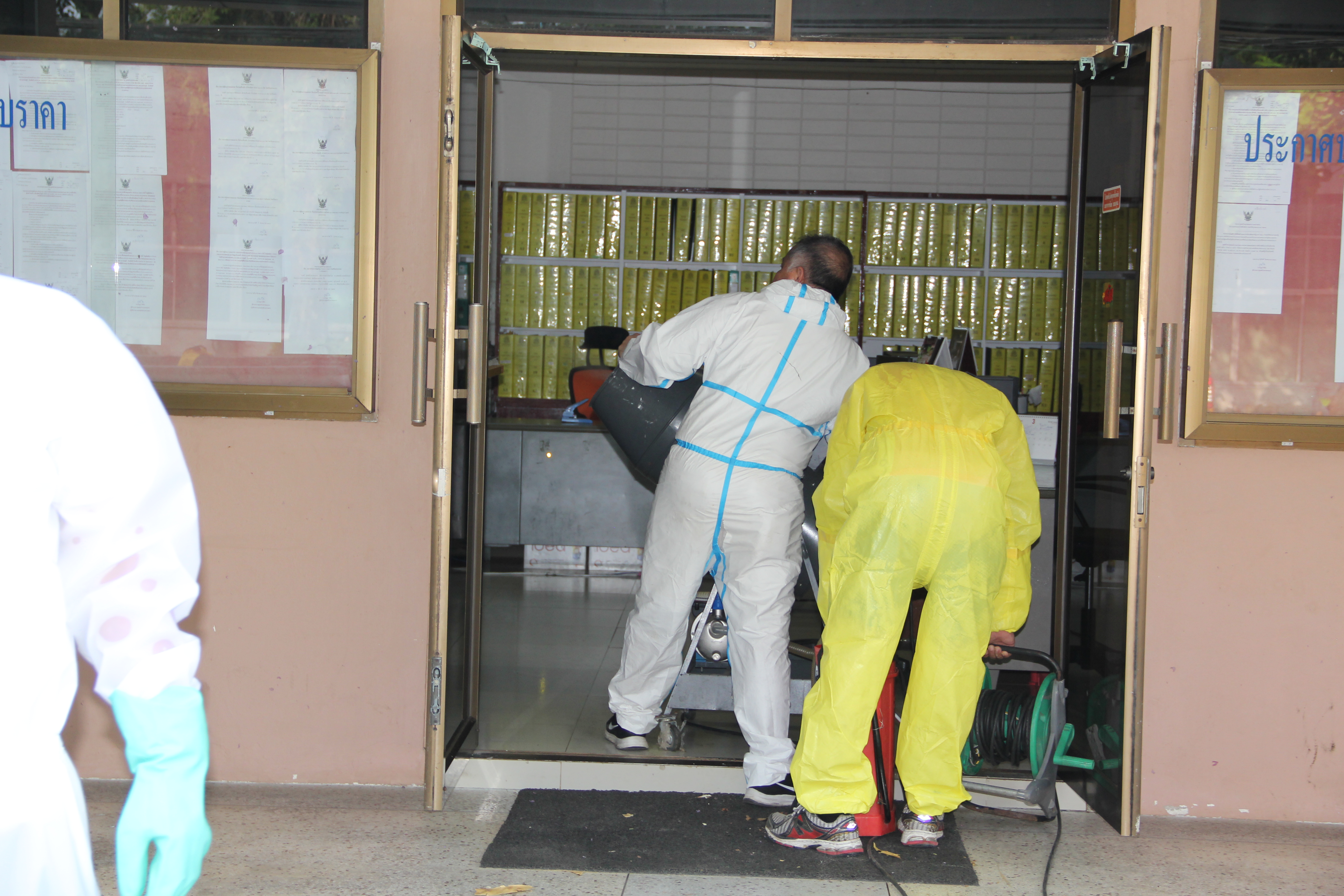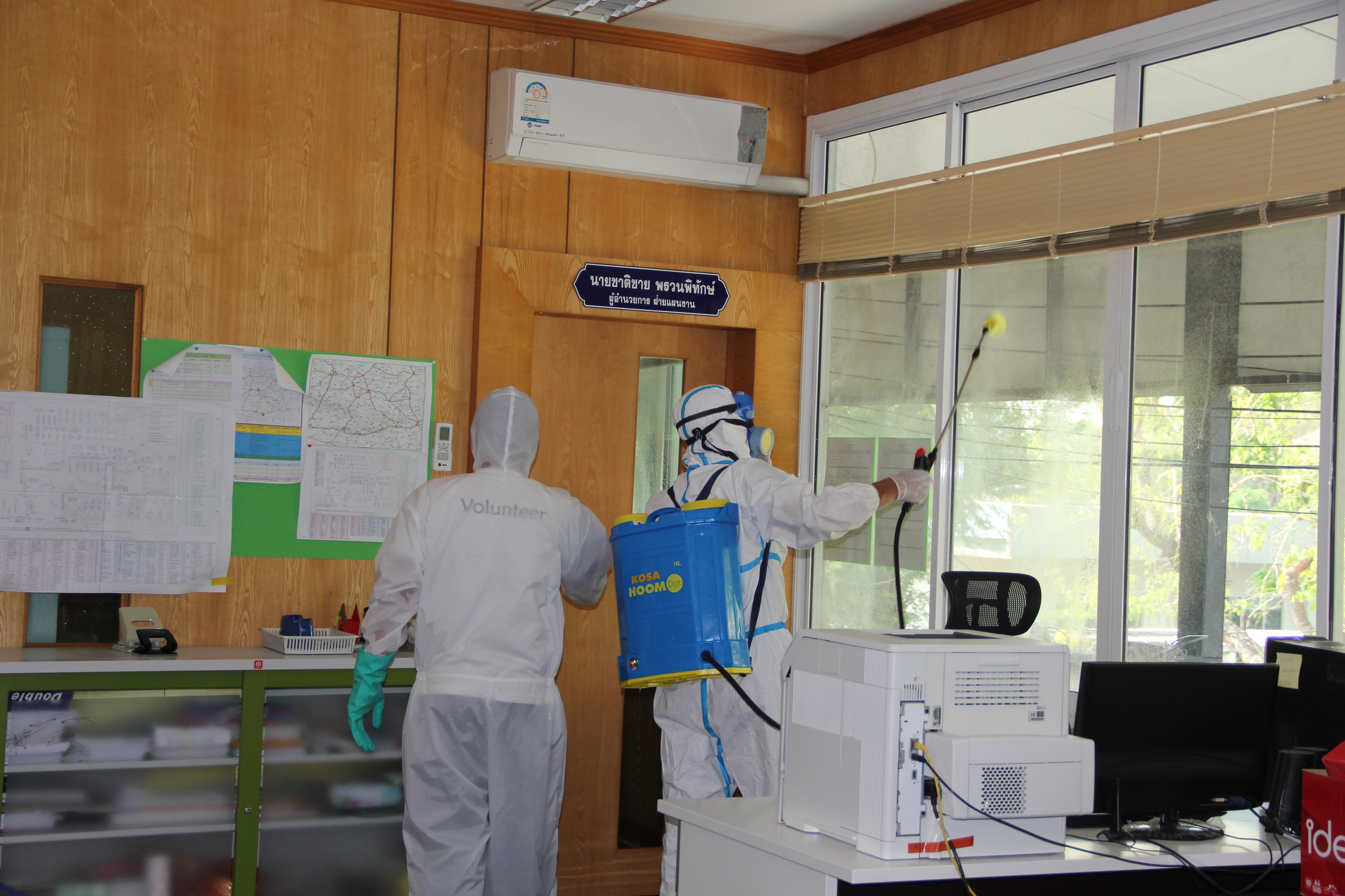 จ้าหน้าที่ทำความสะอาดโดยใช้น้ำยาฆ่าเชื้อบริเวณโต๊ะทำงาน ห้องทำงาน เป็นประจำอีกด้วย