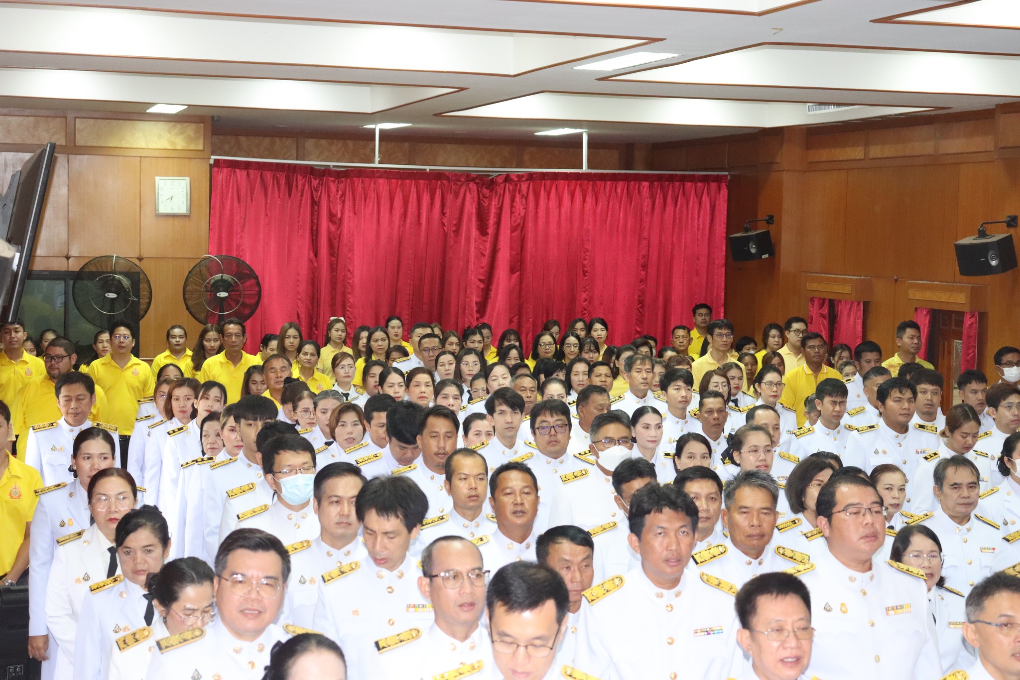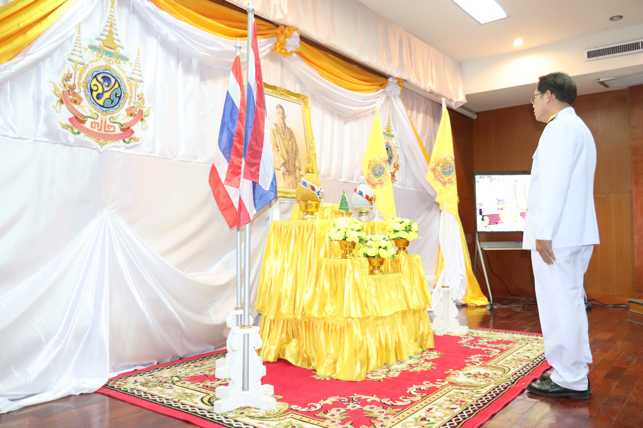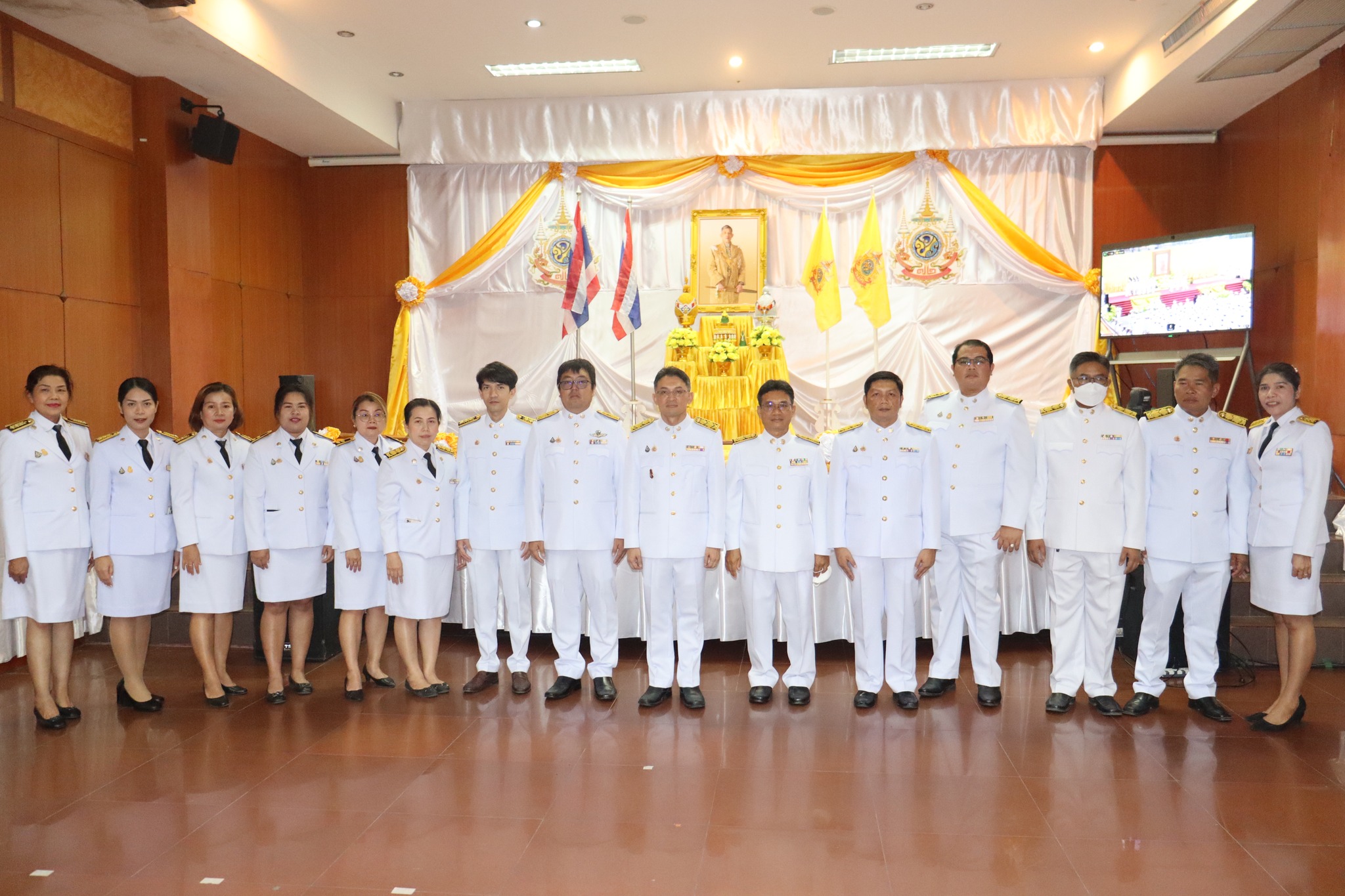 เข้าร่วม พิธี ถวายความเคารพ พระบรมฉายาลักษณ์พระบาทสมเด็จพระเจ้าอยู่หัว ถวายธูปเทียนแพ (เปิดกรวยกระทงดอกไม้) อ่านคำกราบบังคมทูลถวายพระพร จากนั้นกล่าวนำคำถวายสัตย์ปฏิญาณฯ และร้องเพลงสรรเสริญพระบารมีและเพลงสดุดีจอมราชา ณ อาคารเอนกประสงค์ ศูนย์สร้างทางขอนแก่น