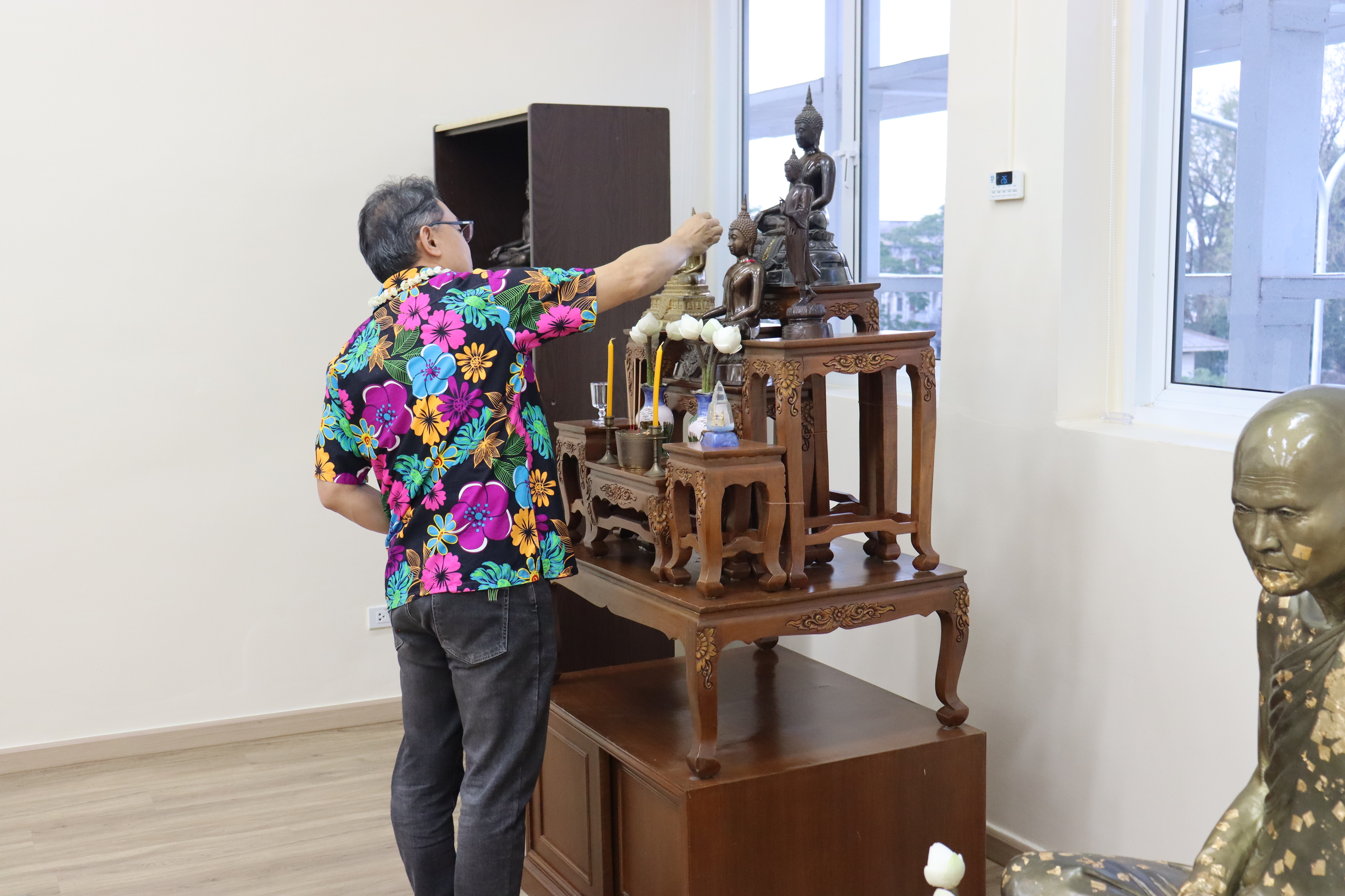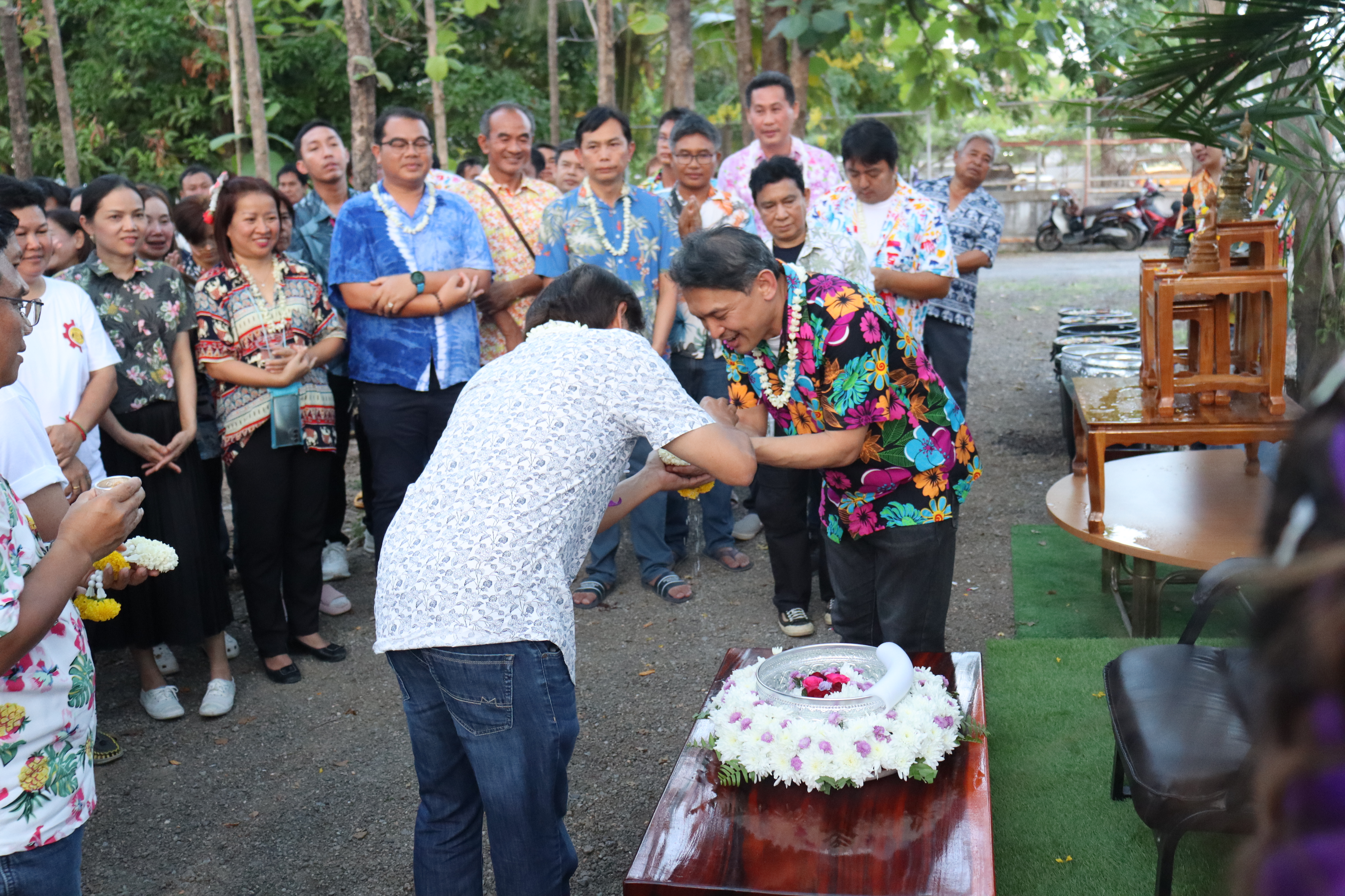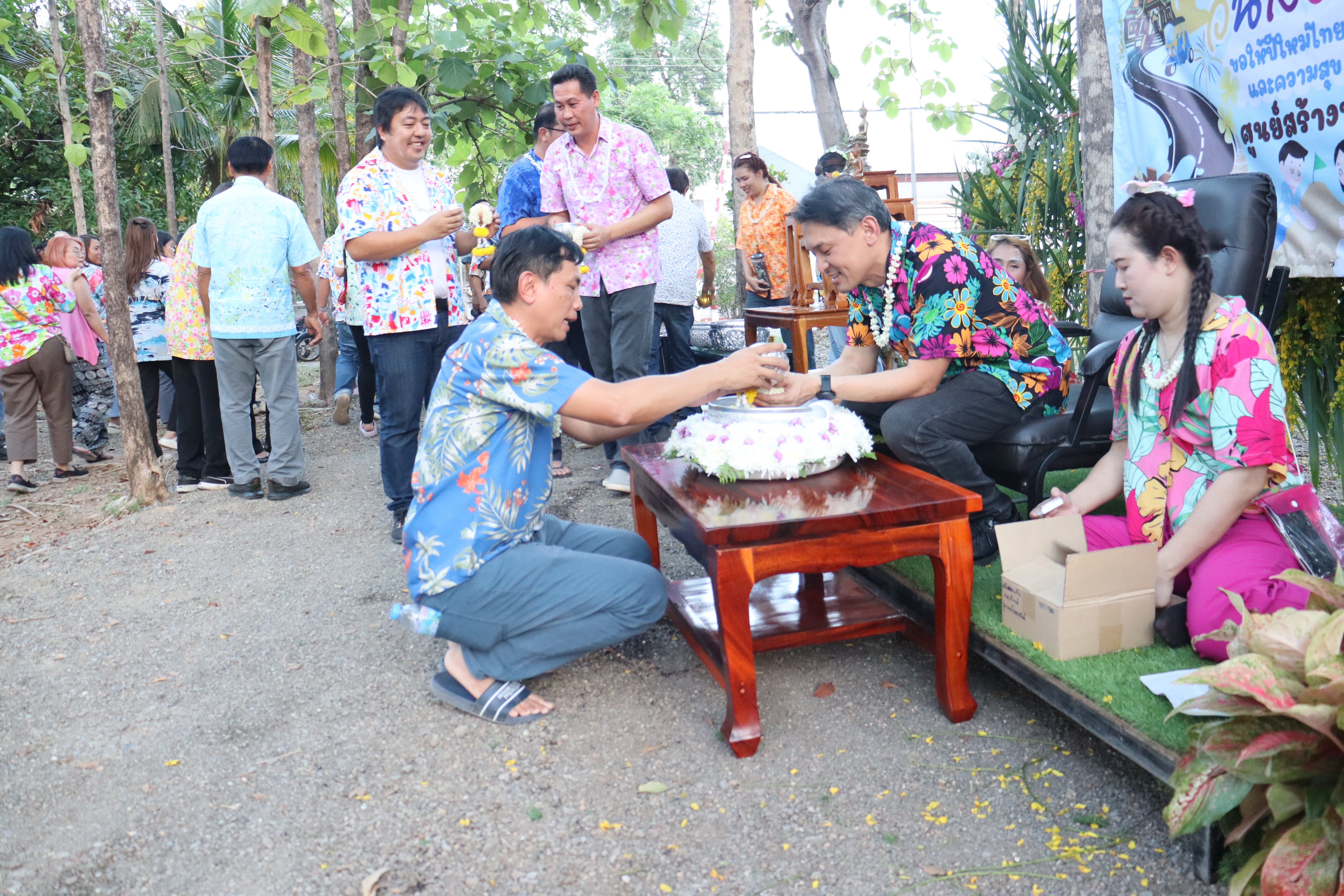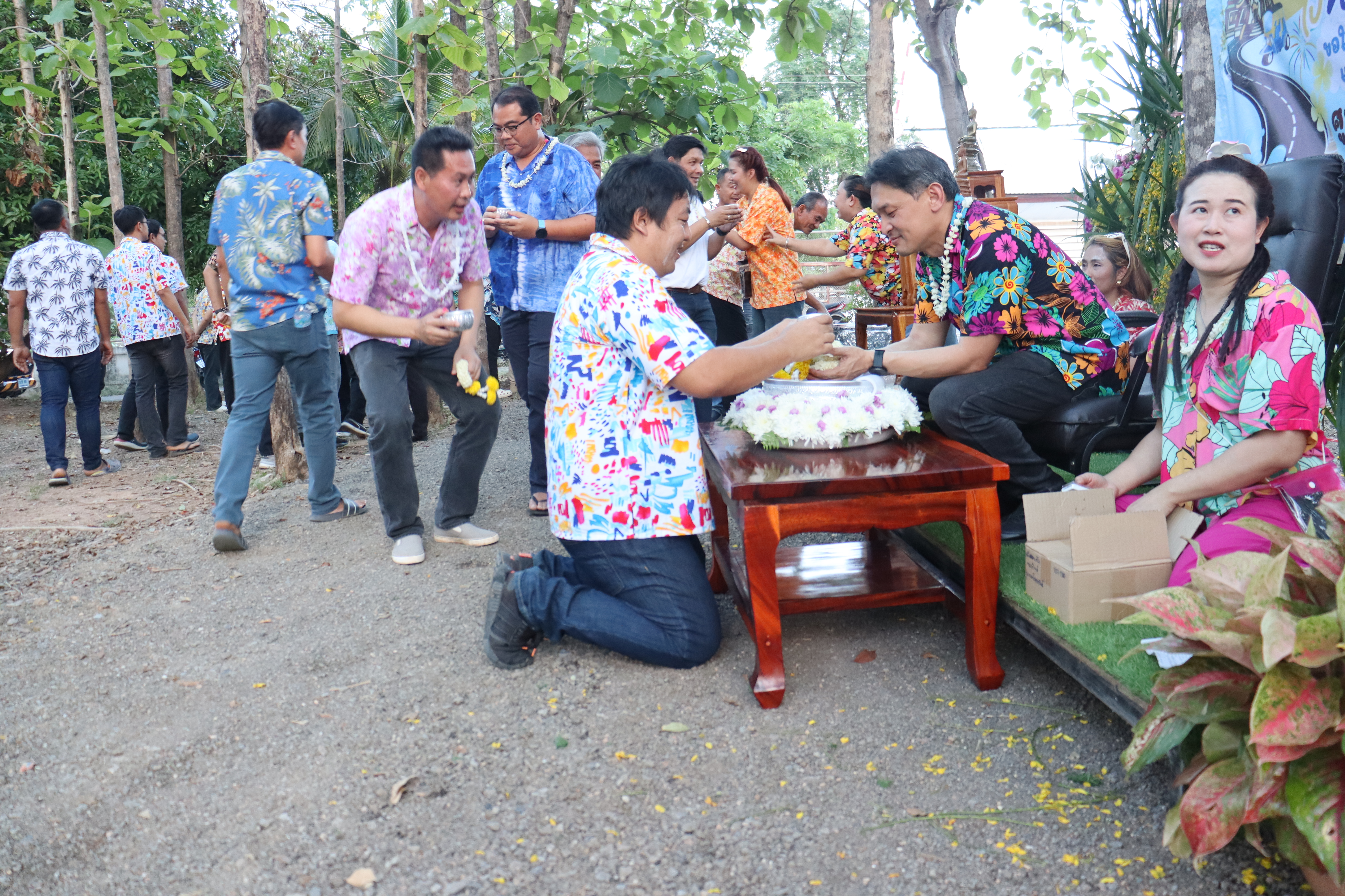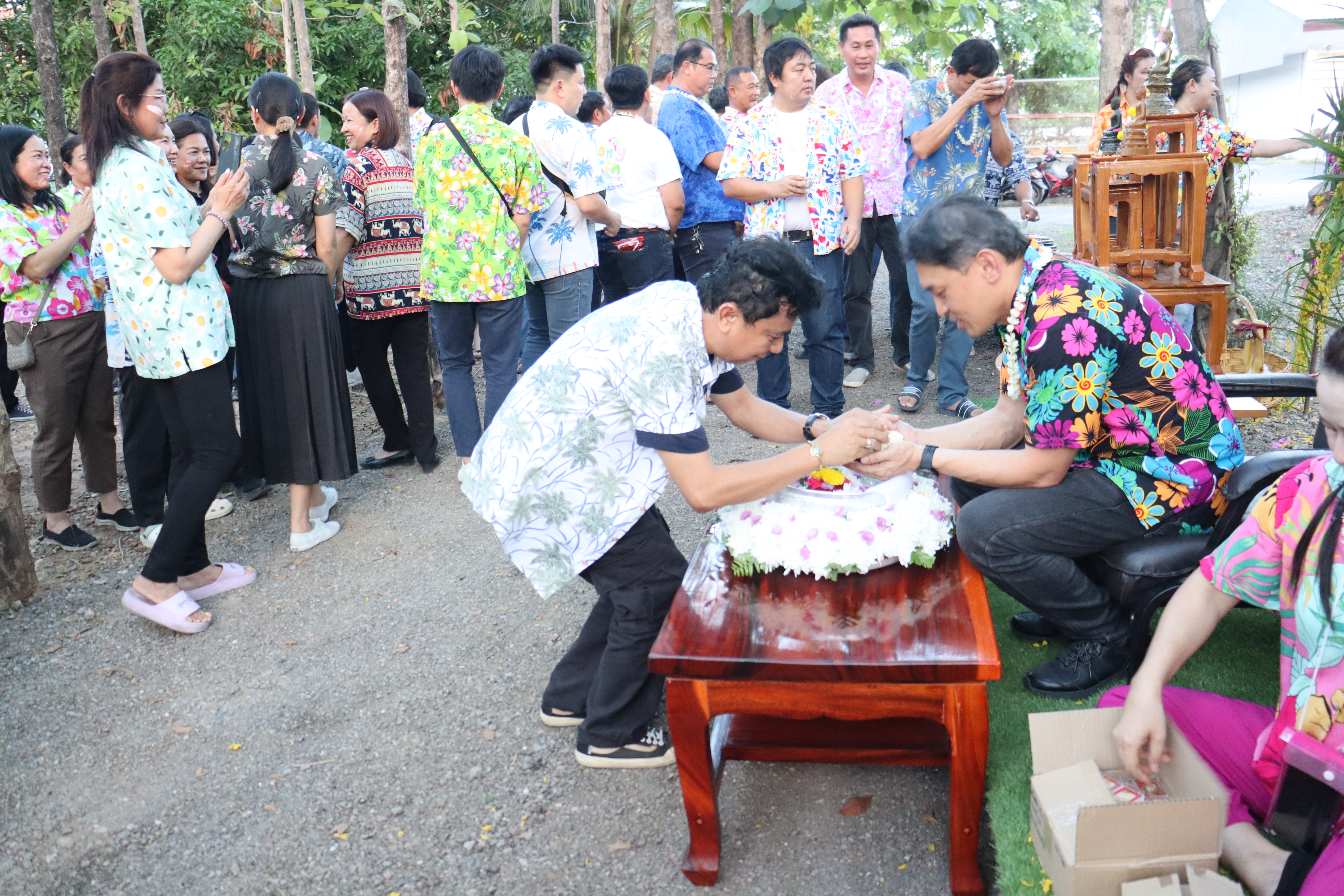 เจ้าหน้าที่ร่วมรดน้ำขอพรจากผู้อำนวยการฯ อย่างพร้อมเพรียง ในวันพุธ ที่ 23 เมษายน 2568