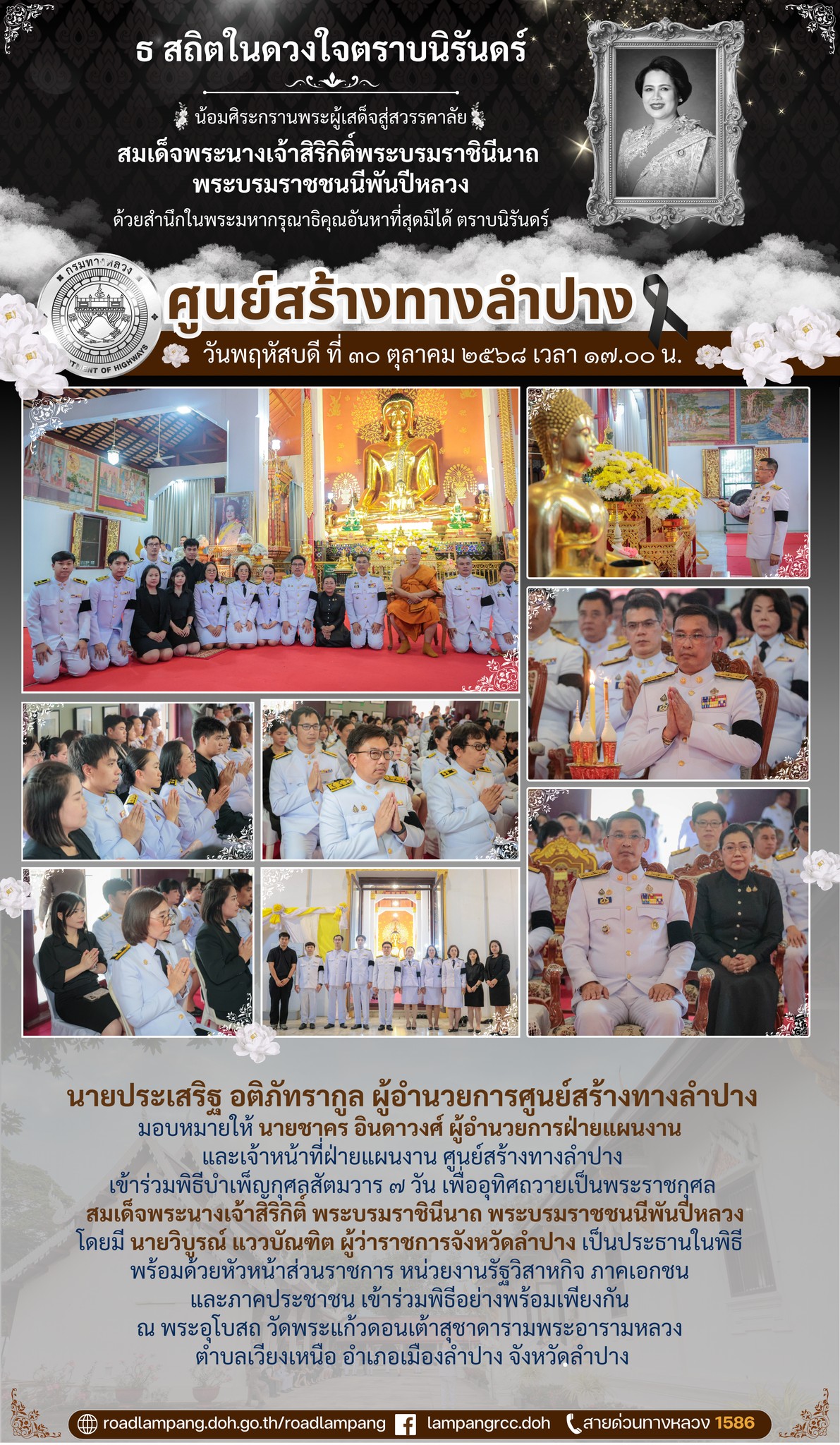 เข้าร่วมพิธีบำเพ็ญกุศลสัตมวาร ๗ วัน เพื่ออุทิศถวายเป็นพระราชกุศล สมเด็จพระนางเจ้าสิริกิติ์ พระบรมราชินีนาถ พระบรมราชชนนีพันปีหลวง