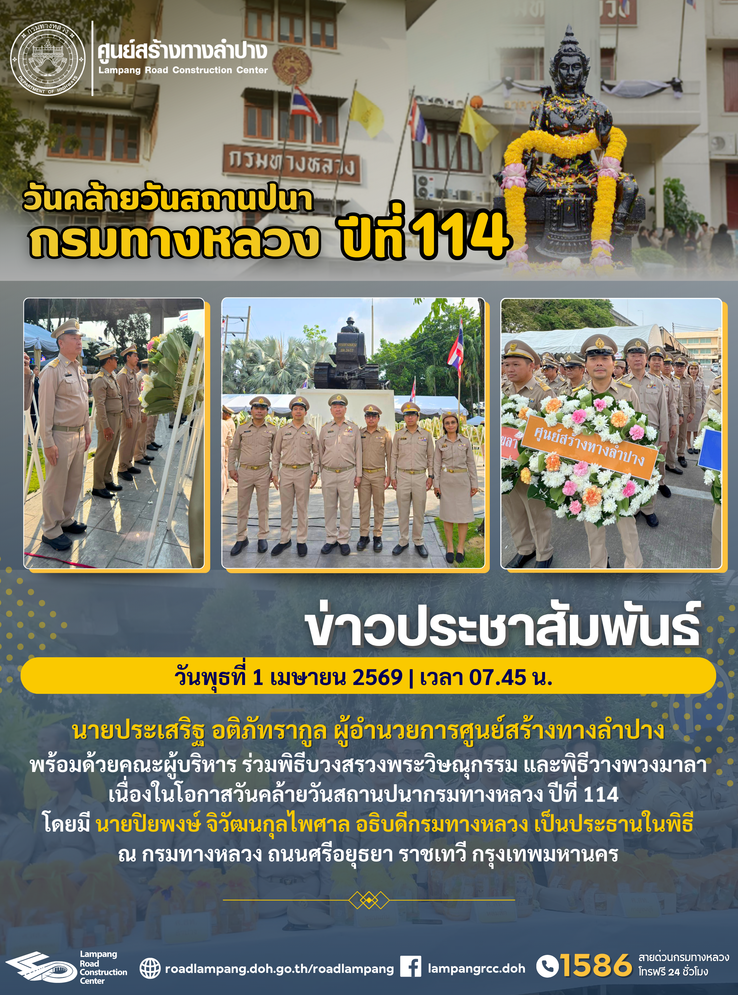 วันคล้ายวันสถานปนากรมทางหลวง 114 ปี