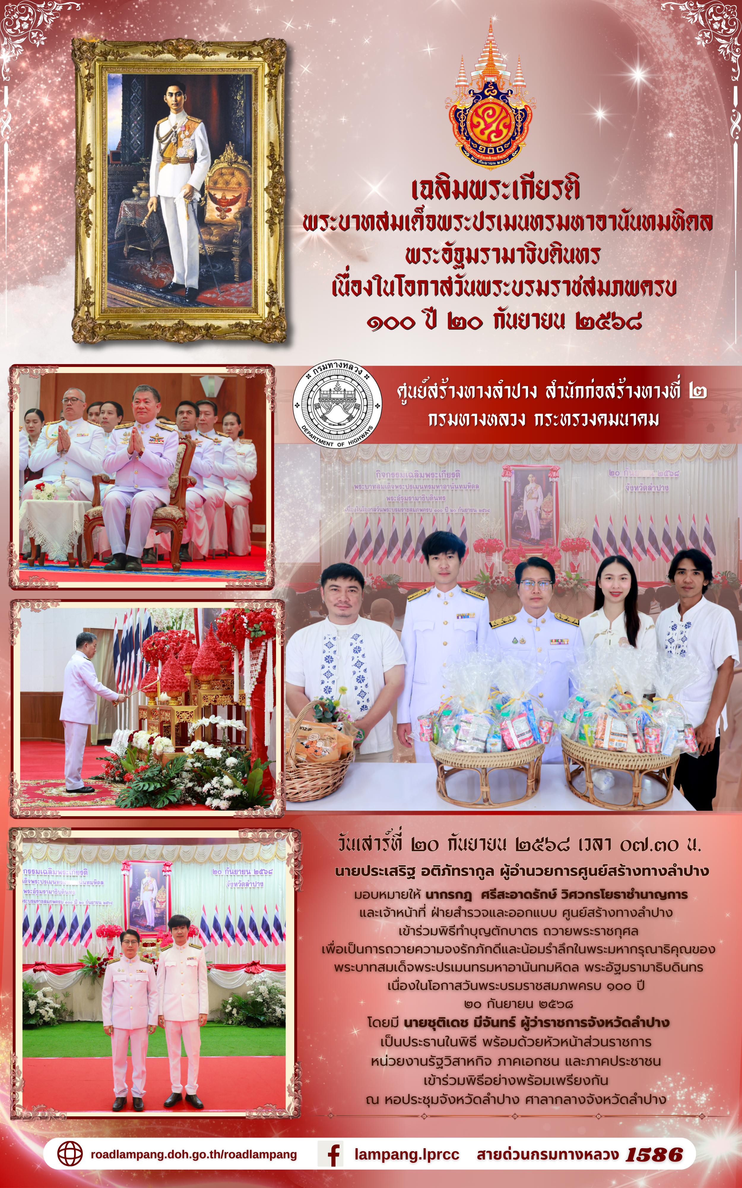 เข้าร่วมพิธีทำบุญตักบาตร ถวายพระราชกุศล เพื่อเป็นการถวายความจงรักภักดีและน้อมรำลึกในพระมหากรุณาธิคุณของพระบาทสมเด็จพระปรเมนทรมหาอานันทมหิดล พระอัฐมรามาธิบดินทร เนื่องในโอกาสวันพระบรมราชสมภพครบ ๑๐๐ ปี ๒๐ กันยายน ๒๕๖๘