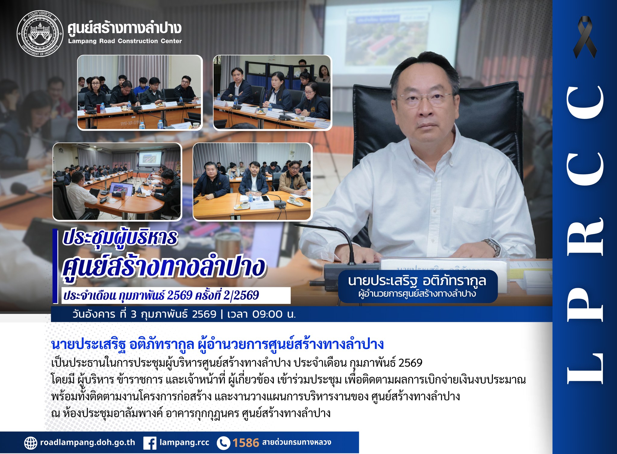 ประชุมผู้บริหารศูนย์สร้างทางลำปาง ประจำเดือน กุมภาพันธ์ 2569