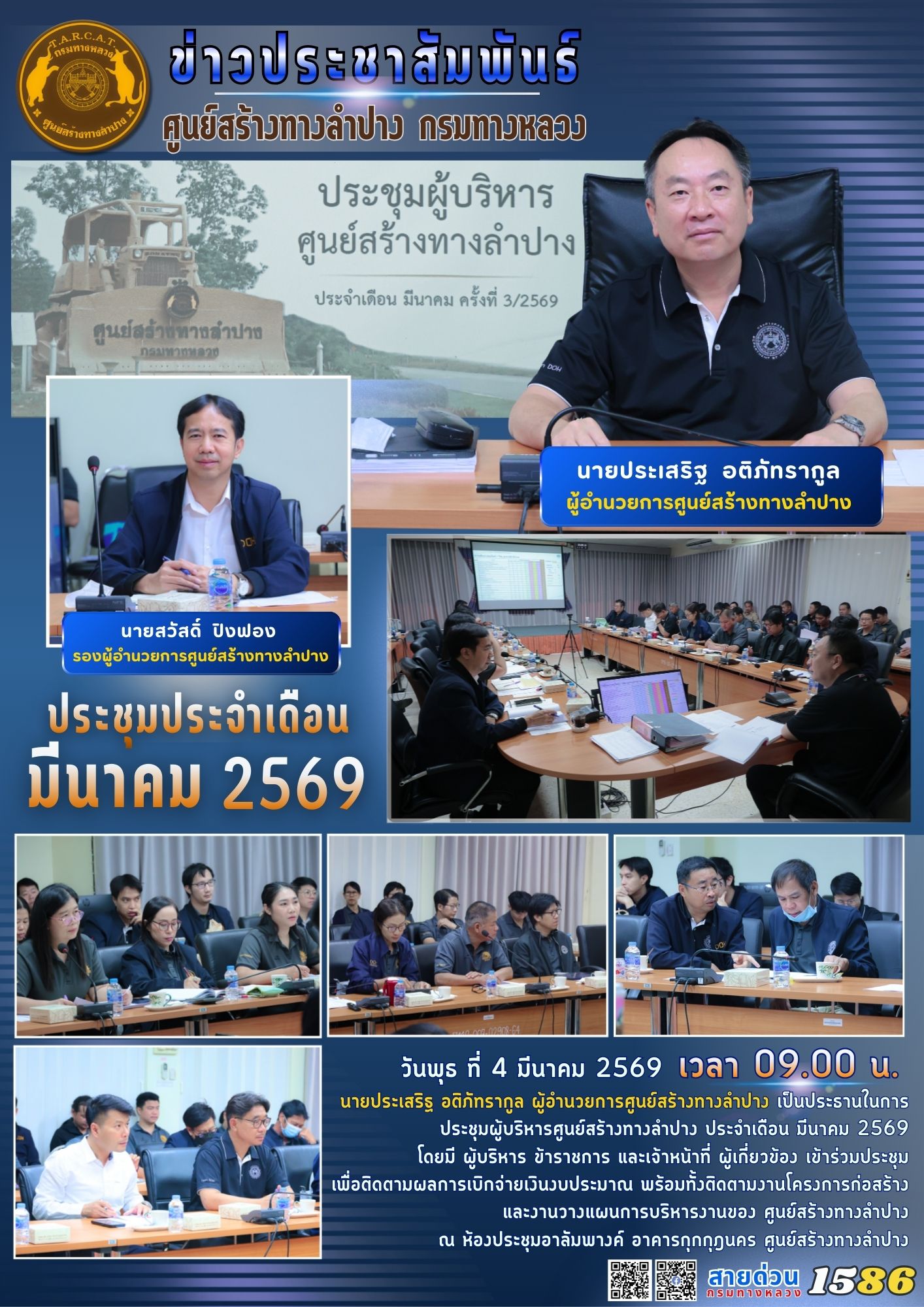ประชุมผู้บริหารศูนย์สร้างทางลำปาง ประจำเดือน มีนาคม 2569