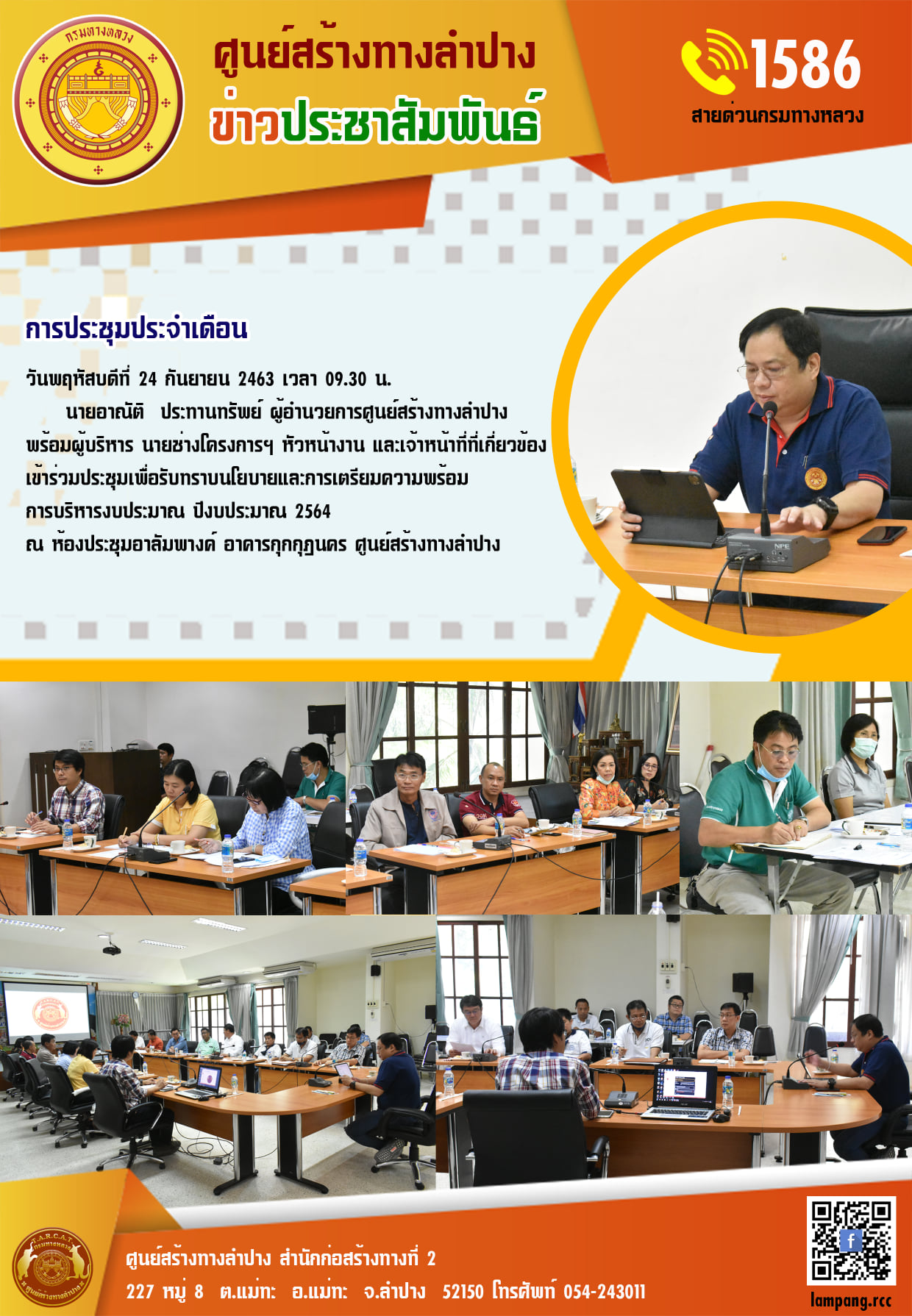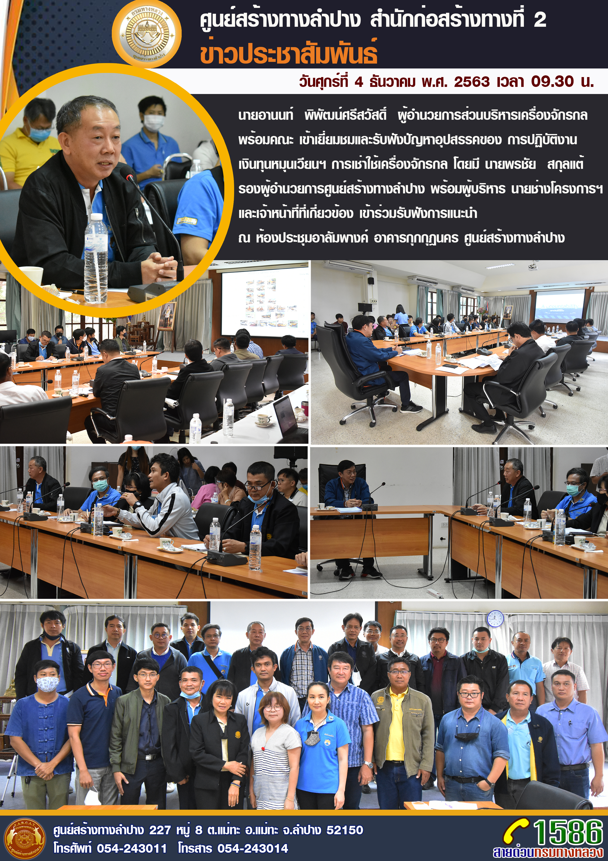 การประชุมวางแผนการจราจร เพื่ออำนวยความปลอดภัยแก่ผู้ใช้เส้นทาง ทางเบี่ยงจราจรช่วง กม.2+300 ของโครงการฯ หมายเลข 127 ตอน เลี่ยงเมืองลำปาง ตอน 1 |