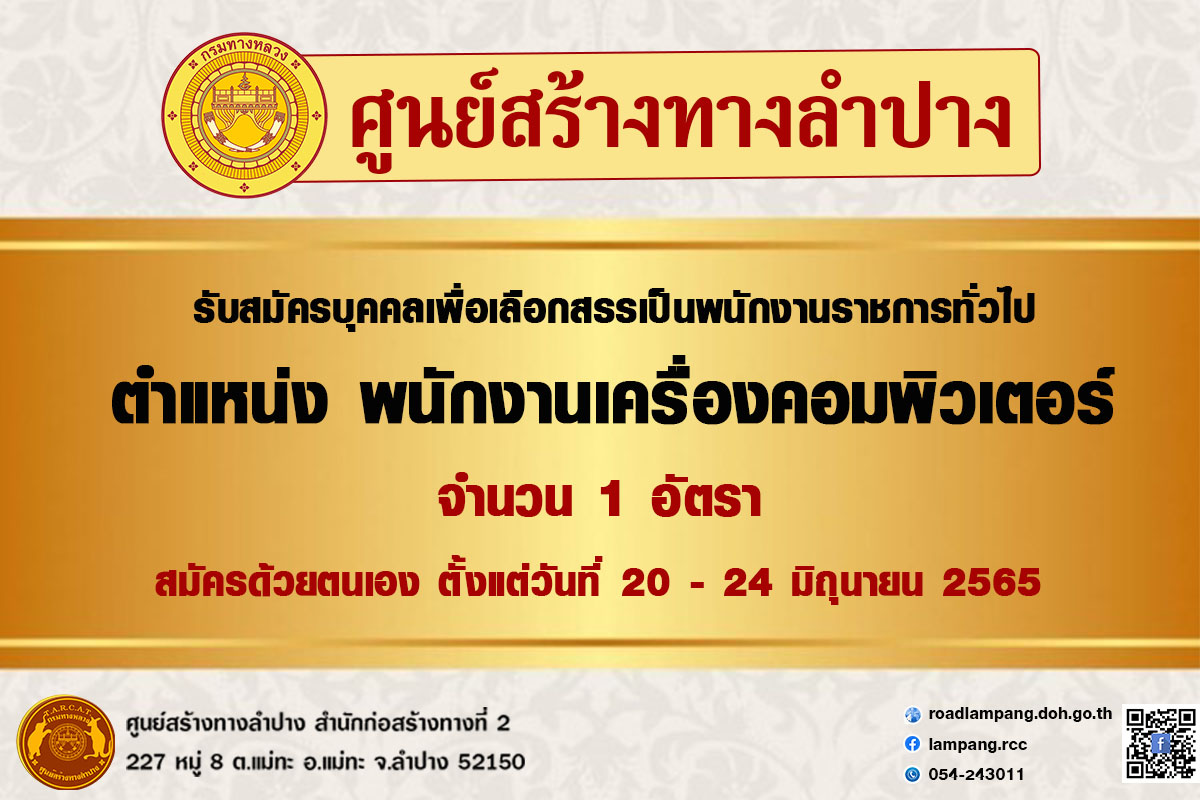 สามารถขอและยื่นใบสมัครด้วยตนเองได้ที่ งานสารบรรณ ฝ่ายบริหารงานทั่วไป ศูนย์สร้างทางลำปาง