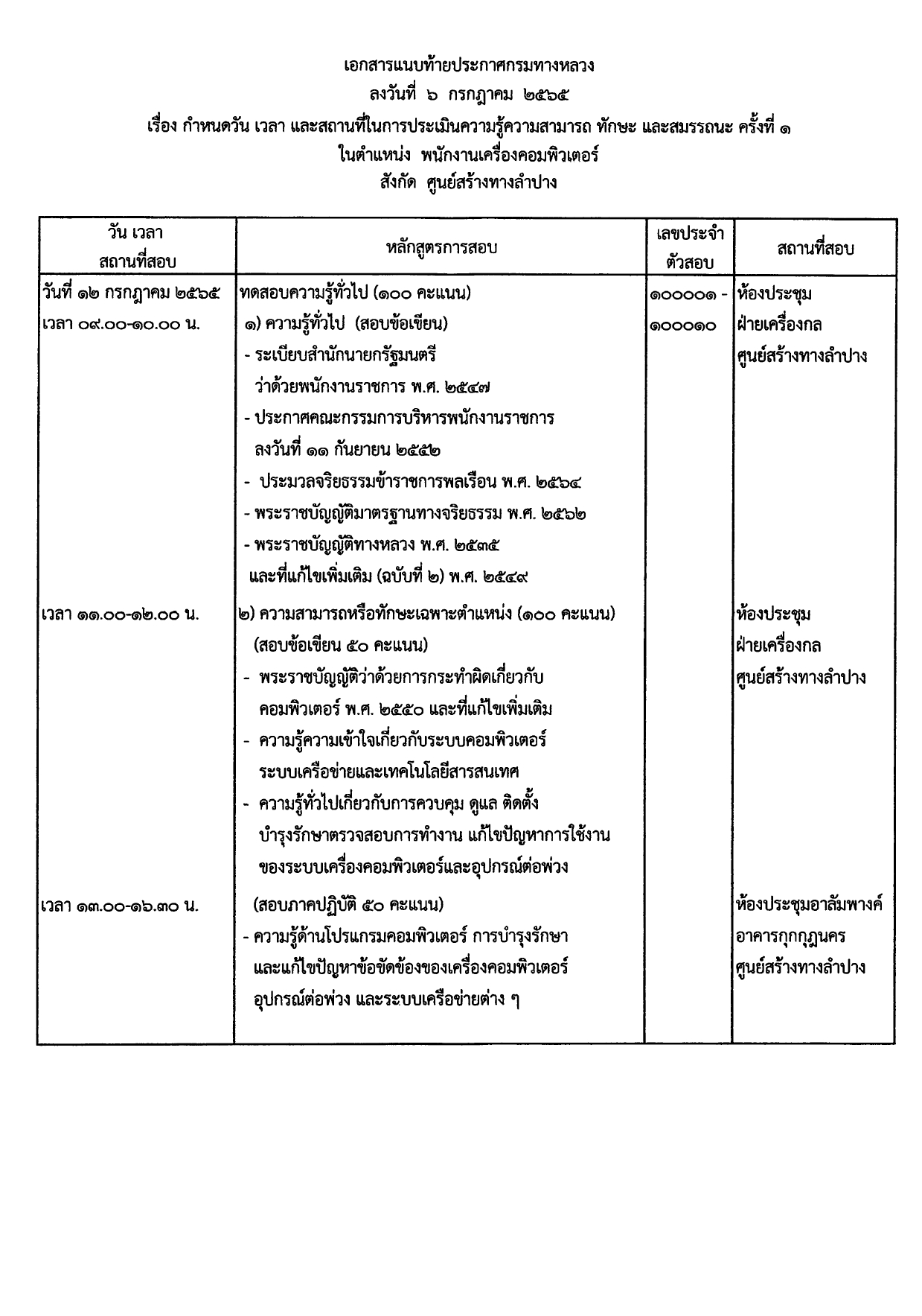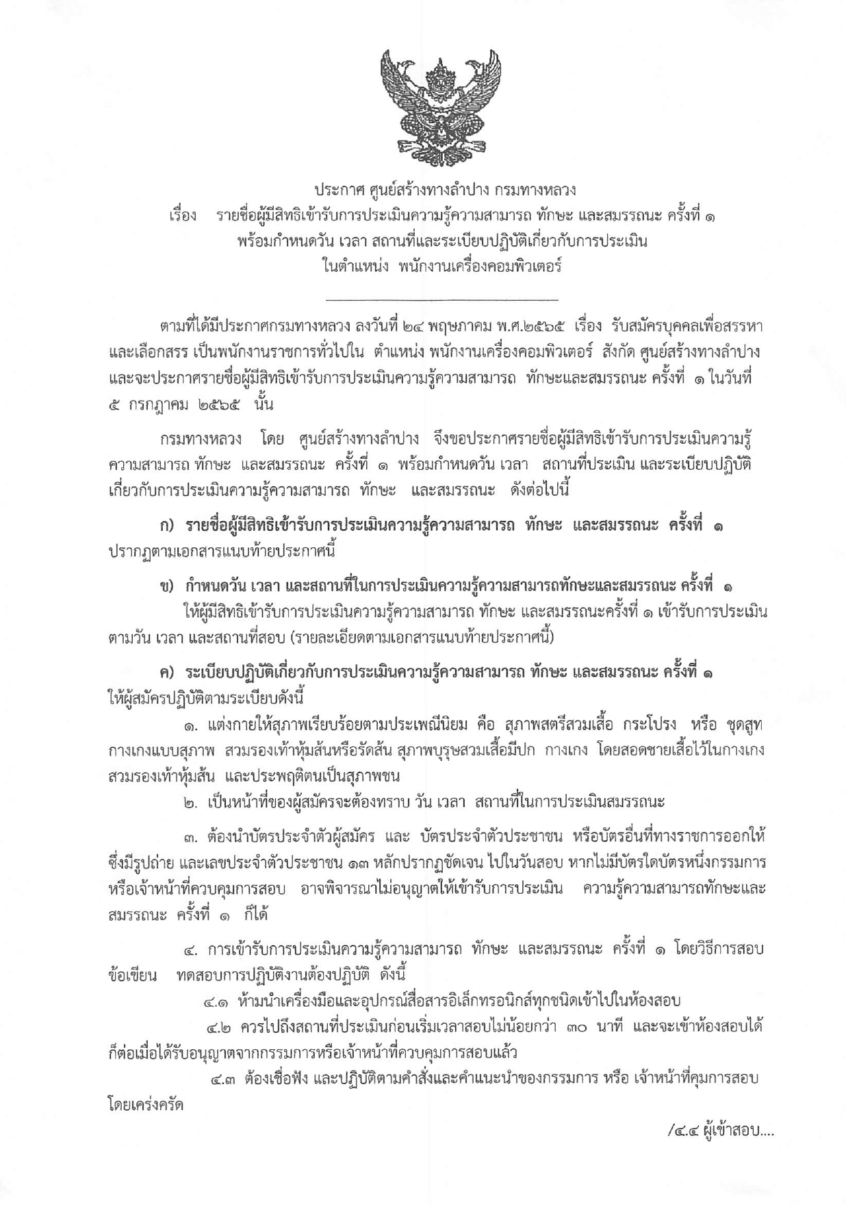 ประกาศรายชื่อผู้มีสิทธ์เข้ารับการประเมินสมรรถนะครั้งที่ 1 กำหนดวันและสถานที่ประเมินสมรรถนะเพื่อเลือกสรรเป็นพนักงานราชการทั่วไป ตำแหน่งพนักงานเครื่องคอมพิวเตอร์