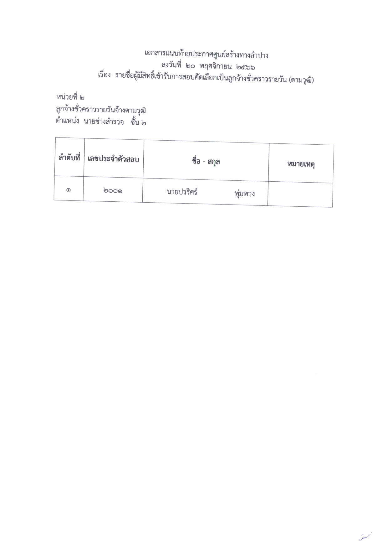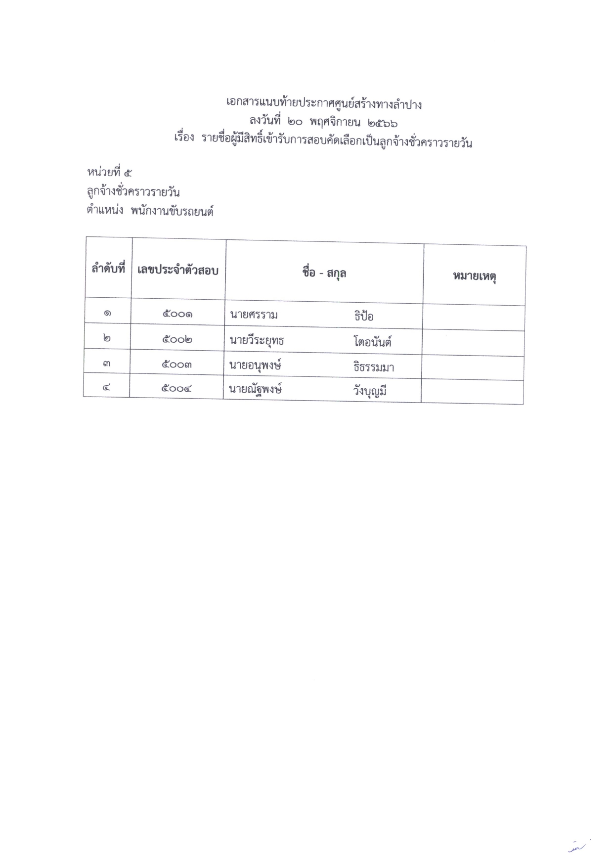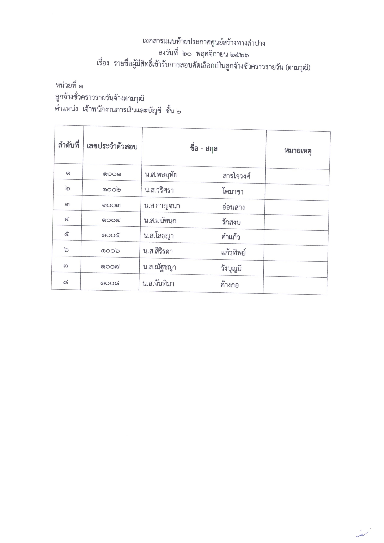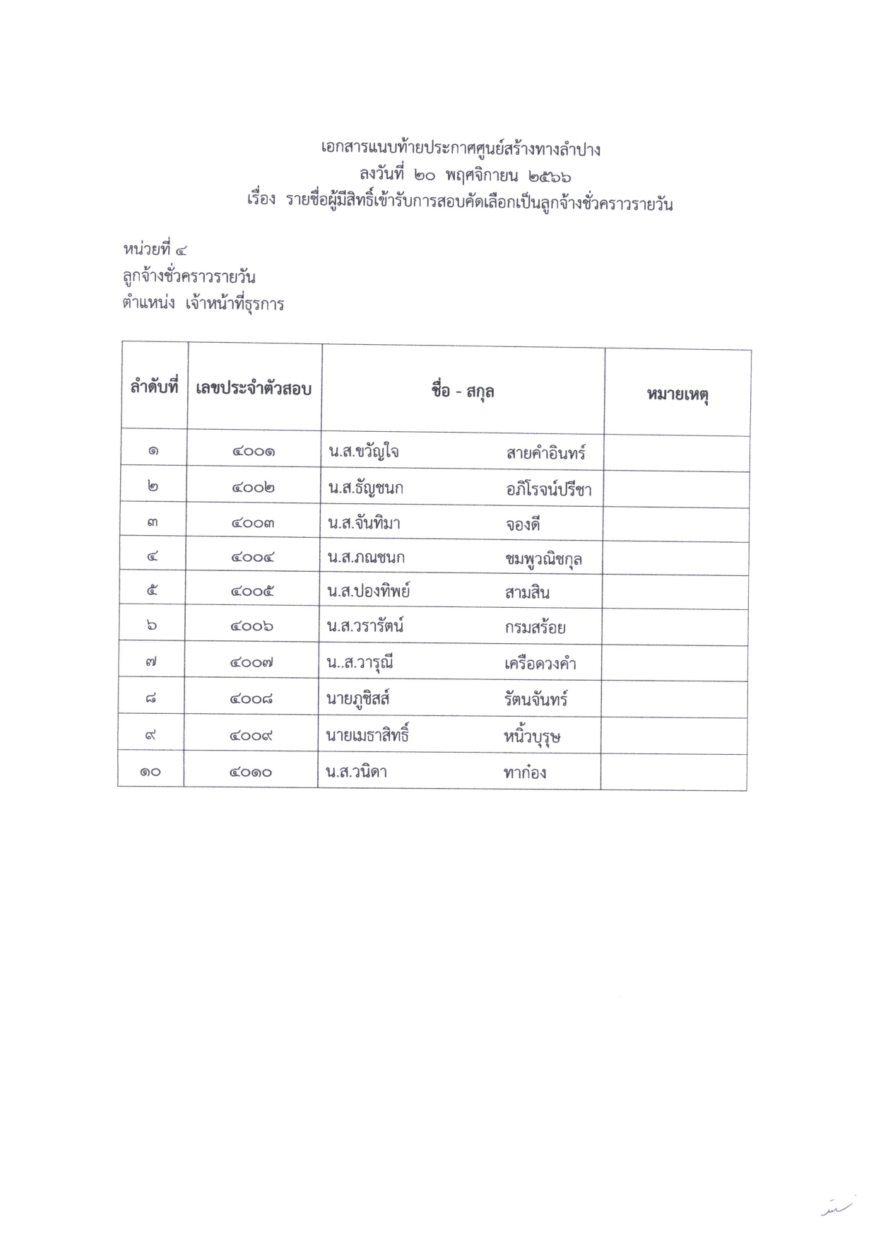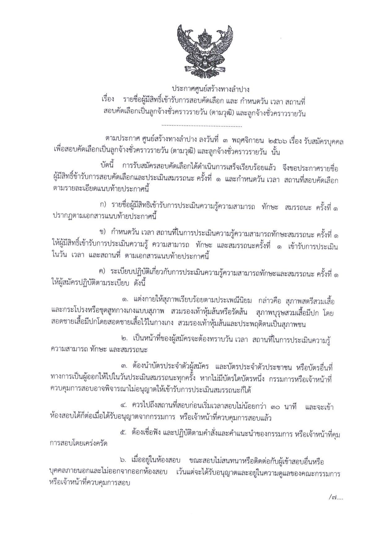 ประกาศรายชื่อผู้มีสิทธ์เข้ารับการสอบคัดเลือกเป็นลูกจ้างชั่วคราวรายวัน และ ลูกจ้างชั่วคราวรายวันตามวุฒิ และกำหนด วัน เวลา สถานที่สอบ