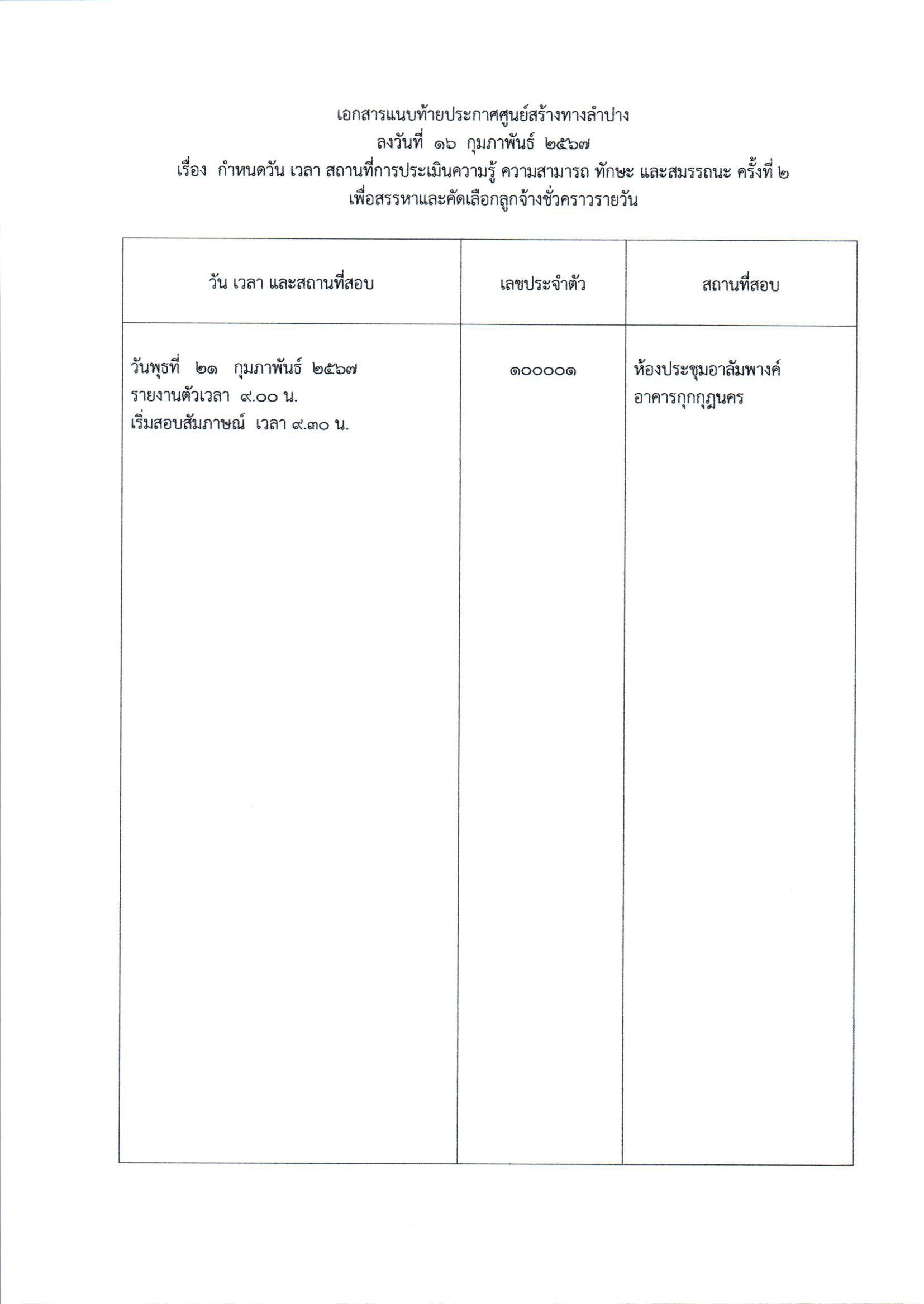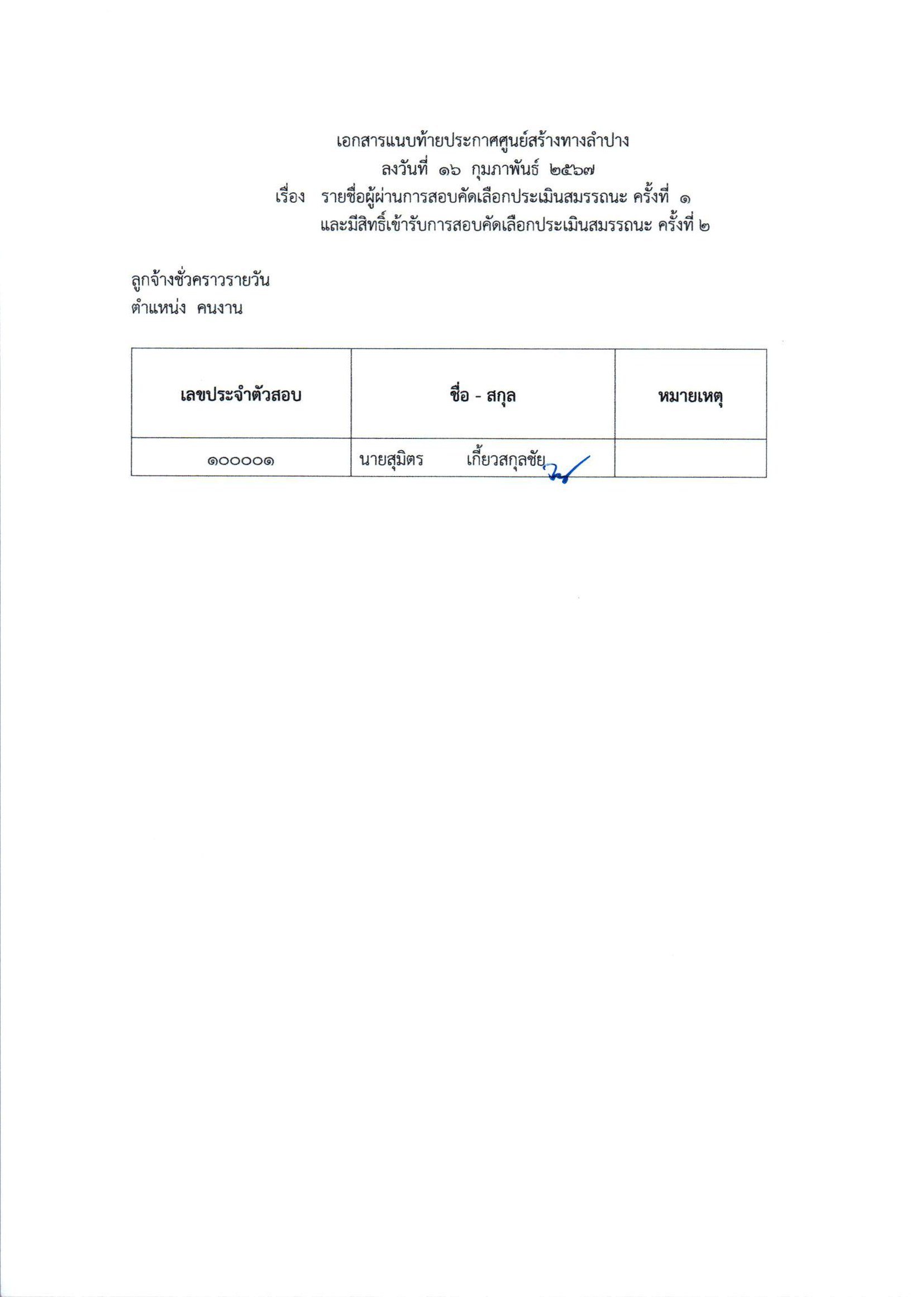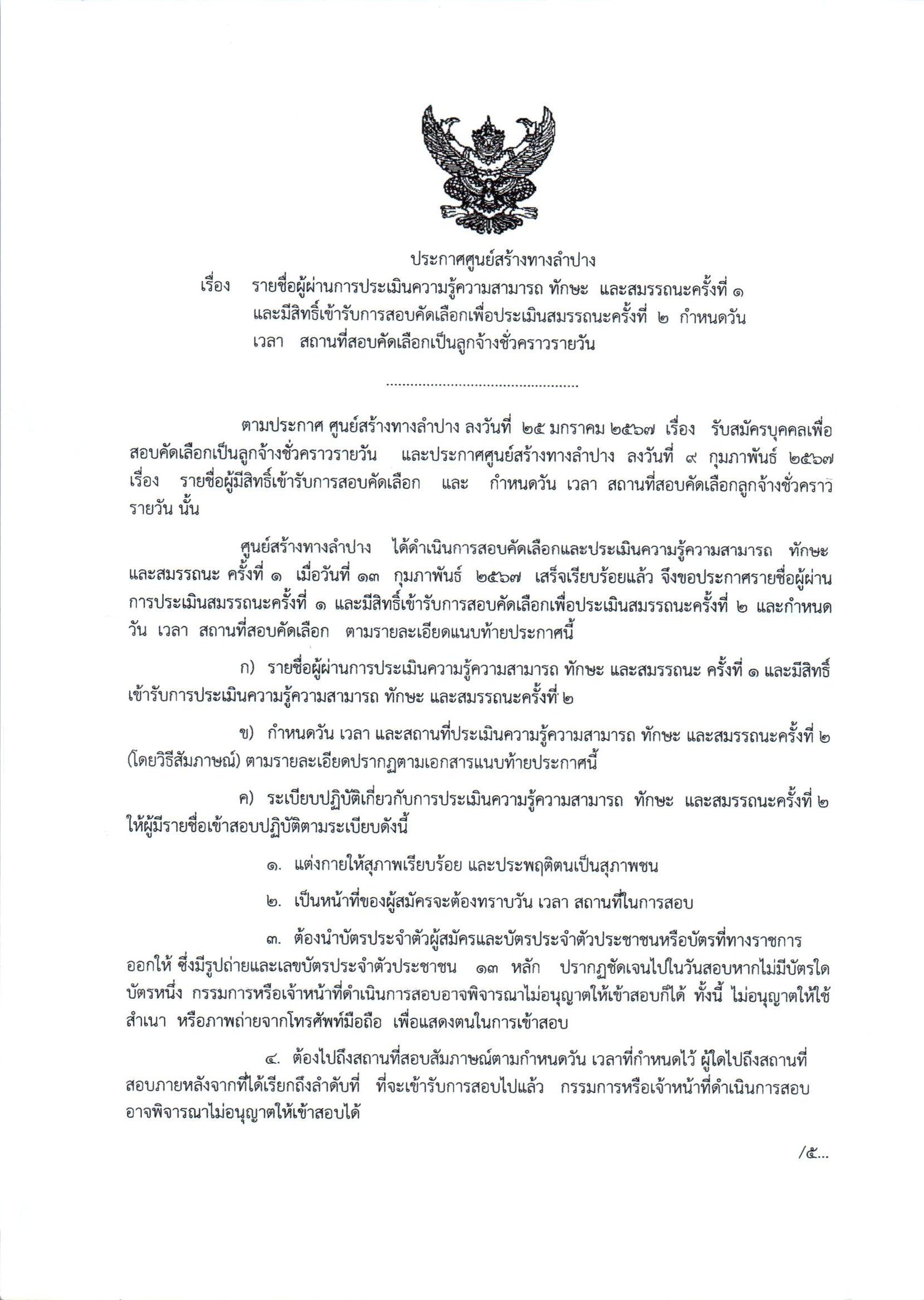 ประกาศรายชื่อผู้ผ่านการประเมินสมรรถนะ ครั้งที่ 1 และมีสิทธิ์เข้ารับการประเมินสมรรถนะ ครั้งที่ 2 ในตำแหน่ง ลูกจ้างชั่วคราวรายวัน