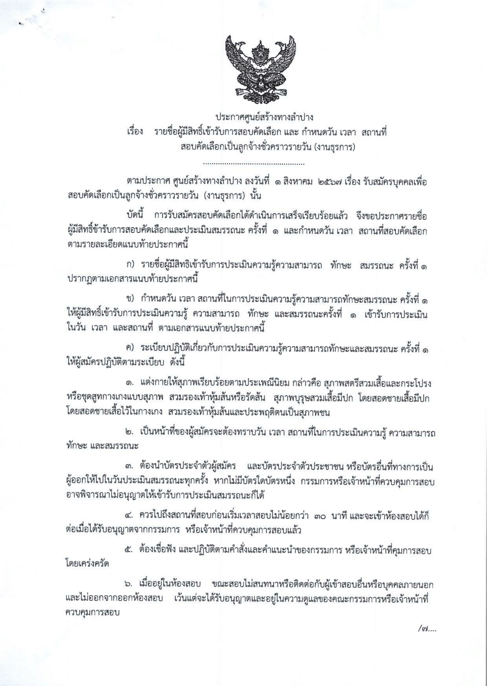 ประกาศรายชื่อผู้มีสิทธ์เข้ารับการสอบคัดเลือกเป็นลูกจ้างชั่วคราวรายวัน และกำหนด วัน เวลา สถานที่สอบ