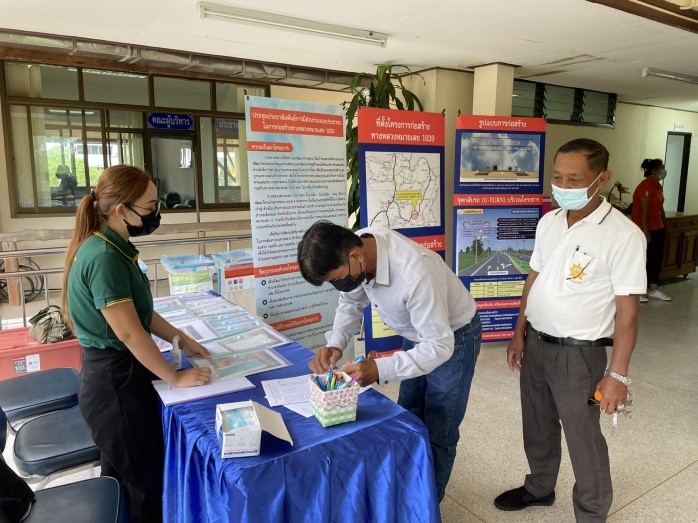 การประชุมประชาสัมพันธ์โครงการและการมีส่วนร่วมและรับฟังความคิดเห็น โครงการก่อสร้างทางหลวงหมายเลข ๑๐๒๐ ตอน โป่งเกลือ - บ้านปล้อง – ชมภู