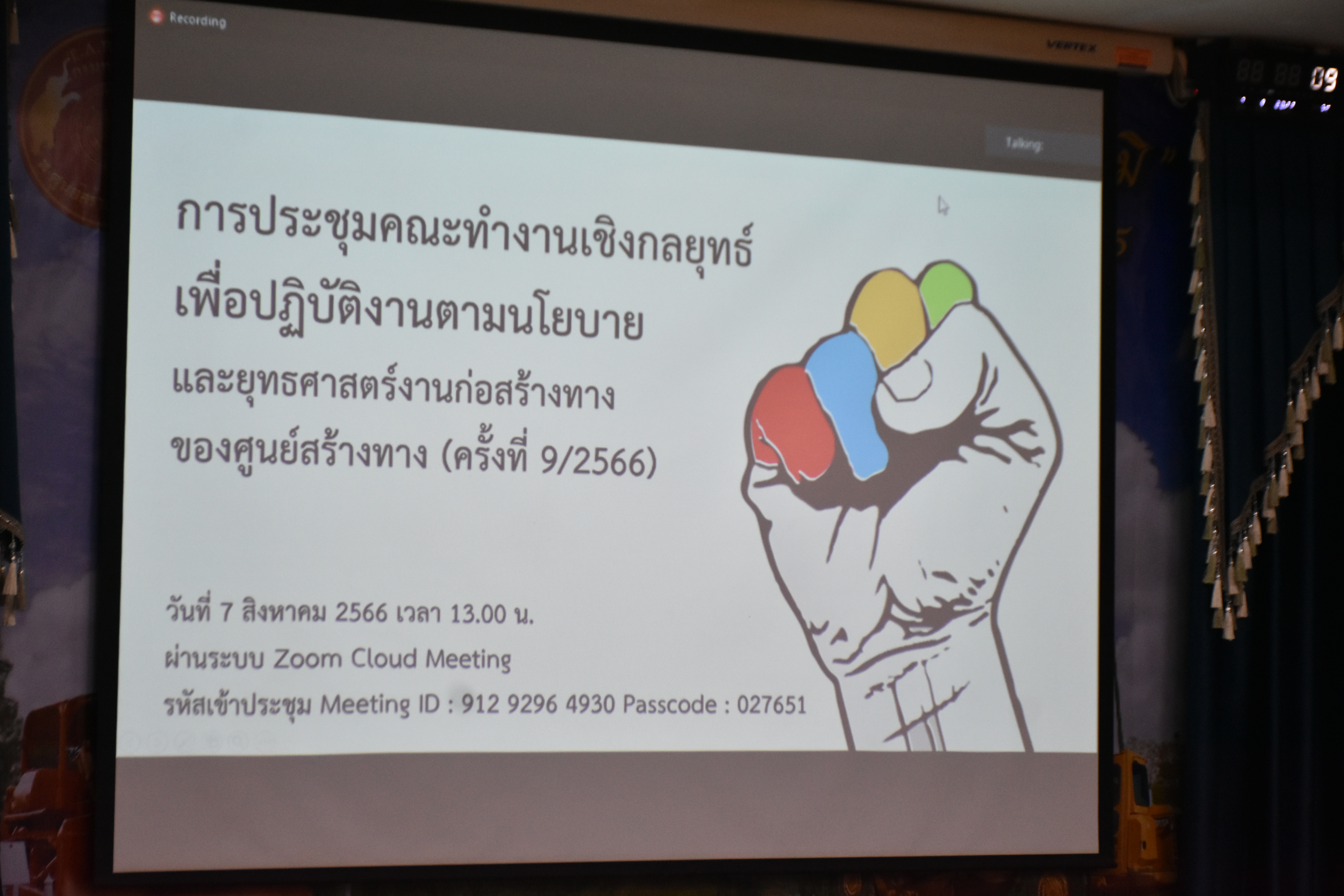 นายกิตติ์ธเนศ โลหิตกาญจน์ ผู้อำนวยการศูนย์สร้างทางลำปาง มอบหมายให้ นายสวัสดิ์ ปิงฟอง รองผู้อำนวยการศูนย์สร้างทางลำปาง พร้อมคณะผู้บริหาร และเจ้าหน้าที่ เข้าร่วมประชุมคณะทำงานเชิงกลยุทธ์ ครั้งที่ 8/2566 โดยมี นายนรภัทร ตรีศิริโชติ ประธานคณะทำงานเชิงกลยุทธ์เพื่อปฏิบัติงานตามนโยบาย และยุทธศาสตร์งานก่อสร้างศูนย์สร้างทาง เป็นประธานการประชุม โดยมีวัตถุประสงค์ เพื่อให้การบริหารดำเนินการก่อสร้างทางมีมาตรฐานการก่อสร้างอยู่ในระดับสูง และเป็นไปในทิศทางเดียวกัน สอดคล้องกับยุทธศาสตร์ของกรมทางหลวง และพร้อมรองรับบทบาทภารกิจในปัจจุบันและอนาคต เพื่อให้การดำเนินการบรรลุวัตถุประสงค์อย่างมีประสิทธิภาพผ่านระบบ Zoom Cloud Meeting ณ ห้องประชุมอาลัมพางค์ อาคารกุกกุฎนคร ศูนย์สร้างทางลำปาง