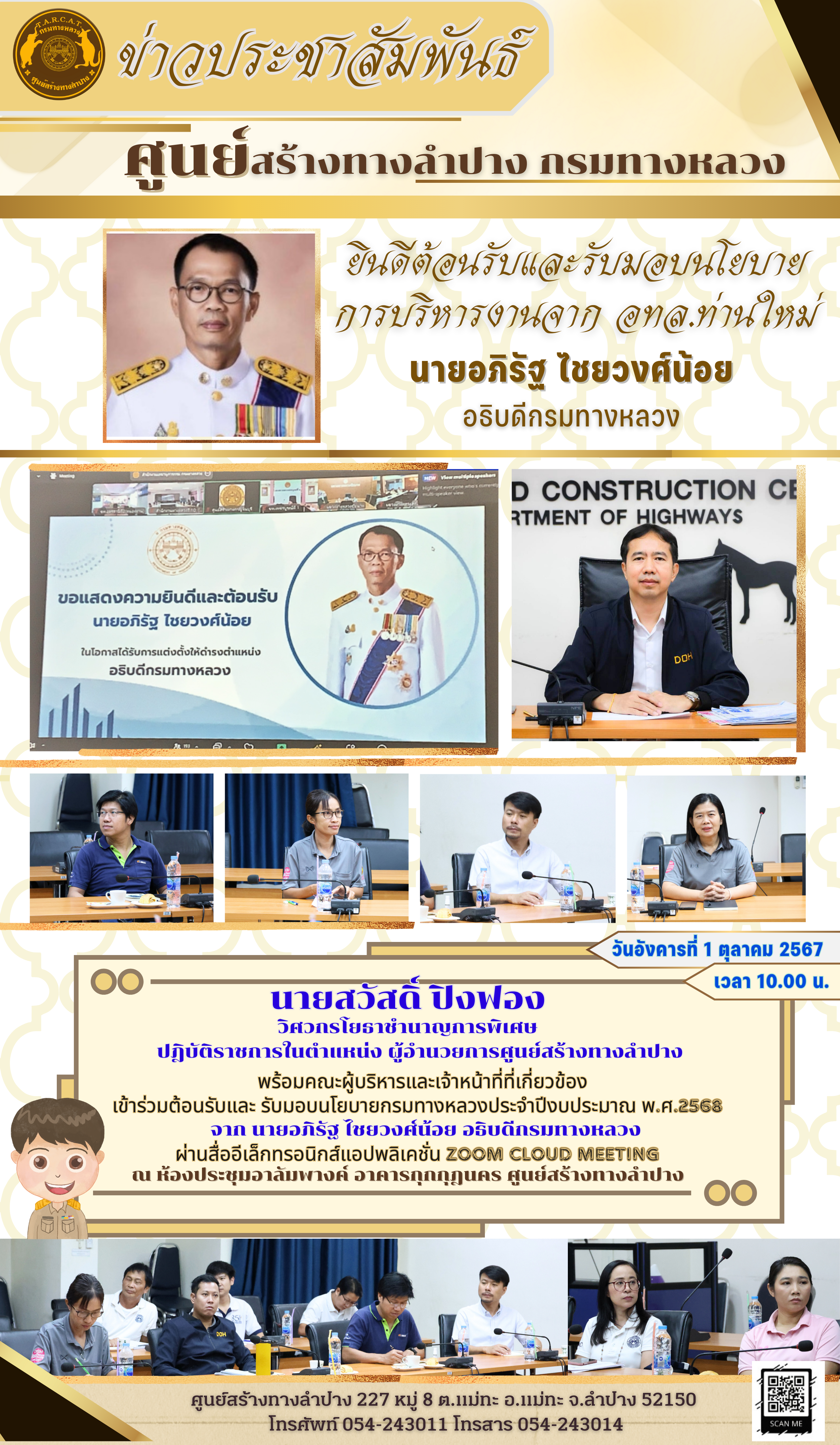 เข้าร่วมต้อนรับและ รับมอบนโยบายกรมทางหลวงประจำปีงบประมาณ พ.ศ.2568 ผ่านสื่ออีเล็กทรอนิกส์แอปพลิเคชั่น Zoom Cloud Meeting