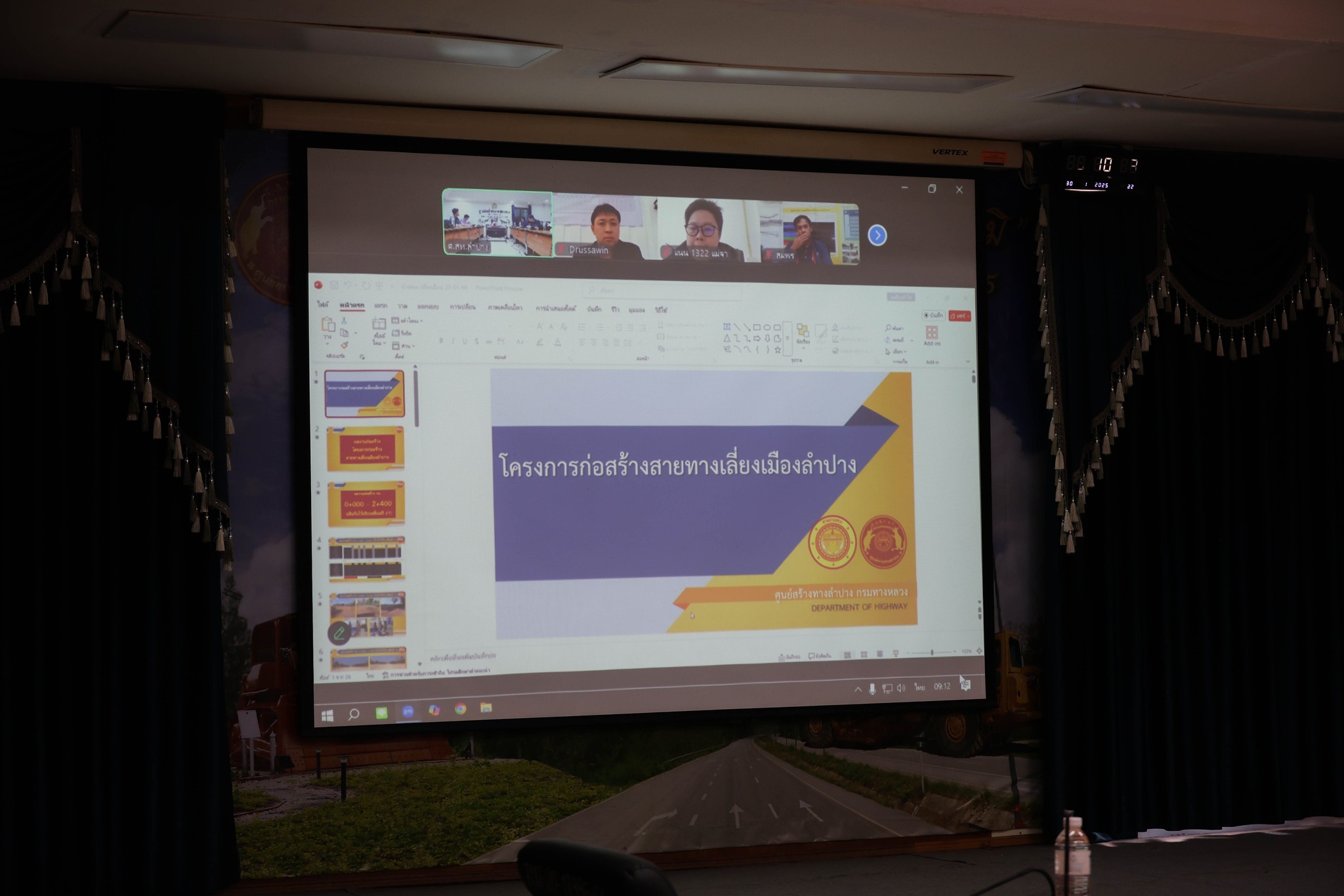 นายประเสริฐ อติภัทรากูล ผู้อำนวยการศูนย์สร้างทางลำปาง เป็นประธานการประชุมติดตามความก้าวหน้าของโครงการก่อสร้างในสังกัด โดยมีผู้บริหาร และเจ้าหน้าที่ผู้เกี่ยวข้อง เข้าร่วมประชุม ผ่านระบบ Zoom Cloud Meeting ณ ห้องประชุมอาลัมพางค์ อาคารกุกกุฎนคร ศูนย์สร้างทางลำปาง