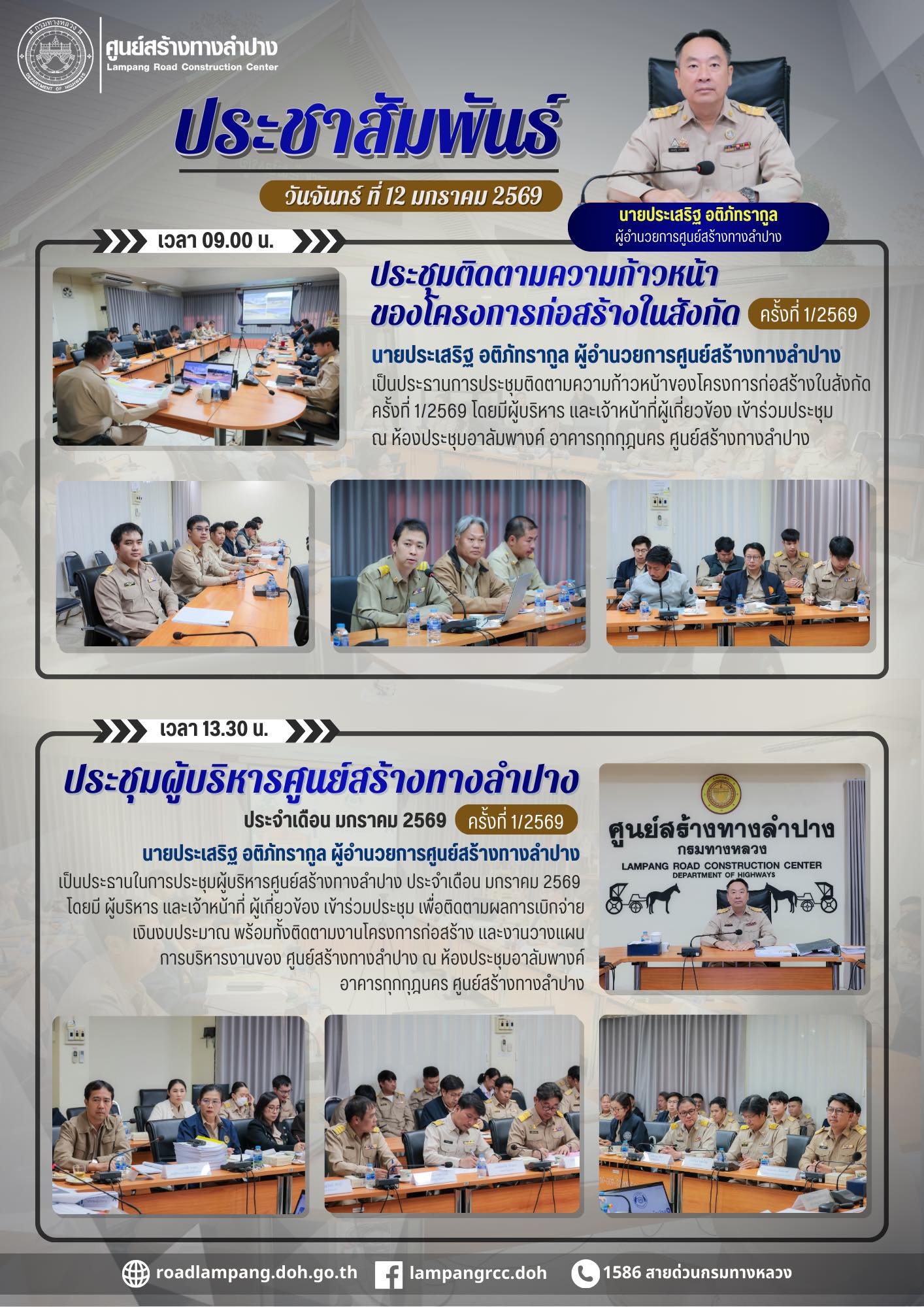 การประชุมติดตามความก้าวหน้าของโครงการก่อสร้างในสังกัด ครั้งที่ 1/2569 และ ประชุมผู้บริหารศูนย์สร้างทางลำปาง ประจำเดือน มกราคม 2569