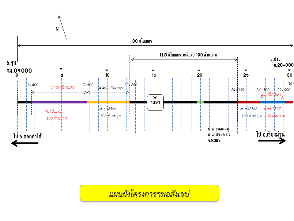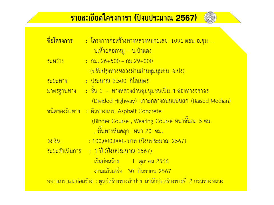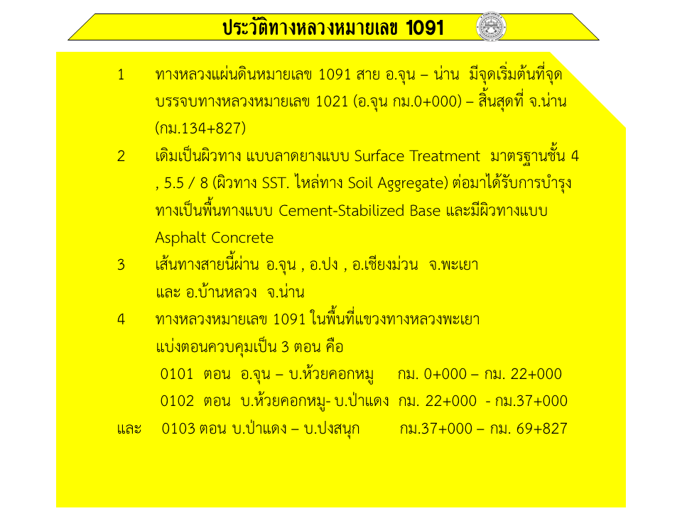 เนื้อหาเพจ : ทางหลวงหมายเลข 1091 ตอน จุน-ห้วยคอกหมู-ป่าแดง