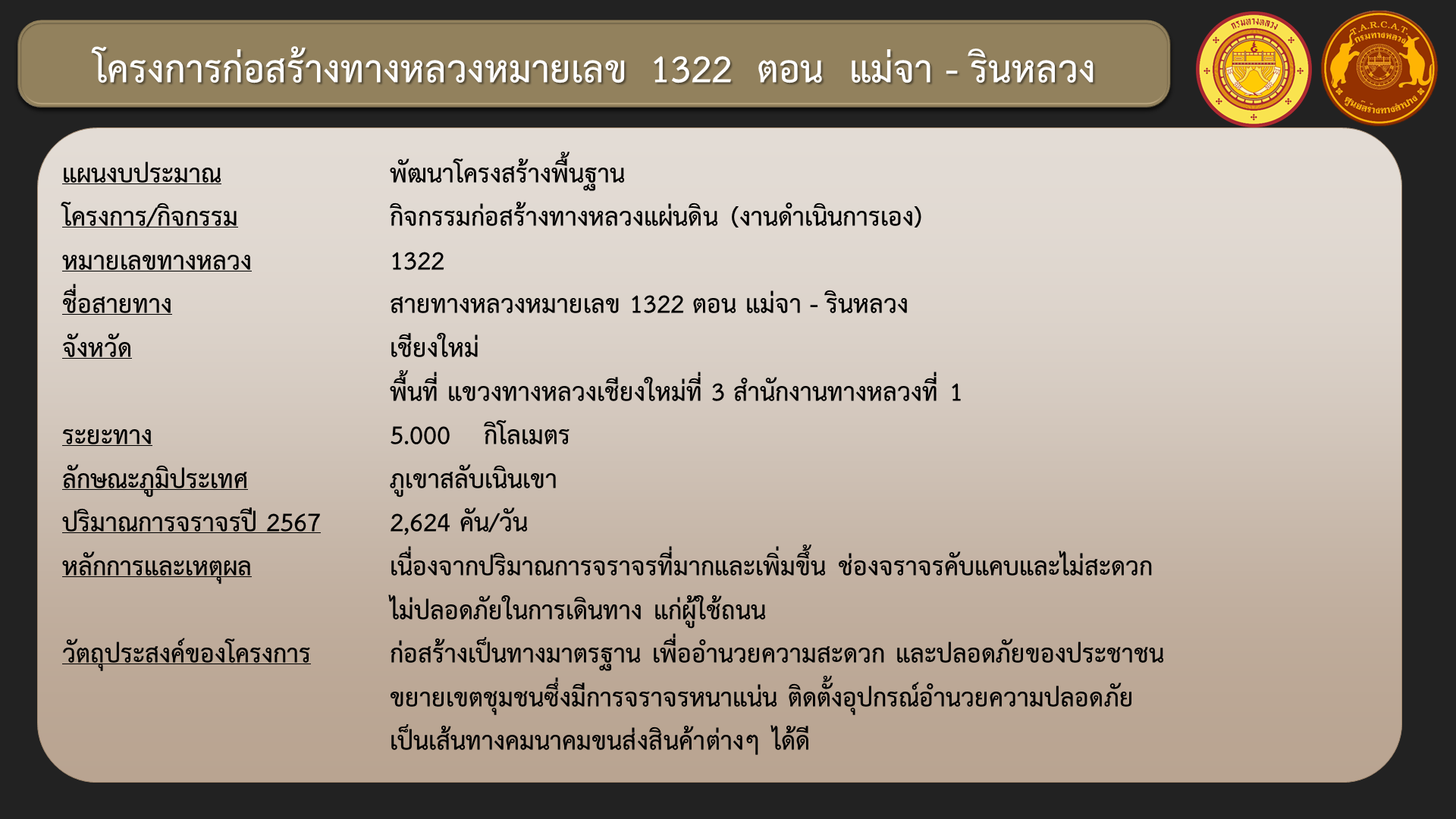 เนื้อหาเพจ : ทางหลวงหมายเลข 1322 ตอน แม่จา - รินหลวง