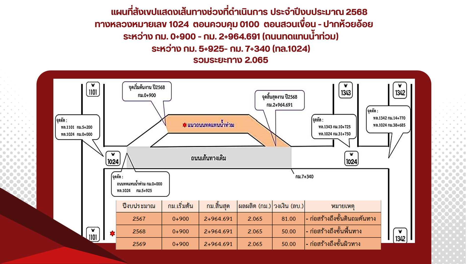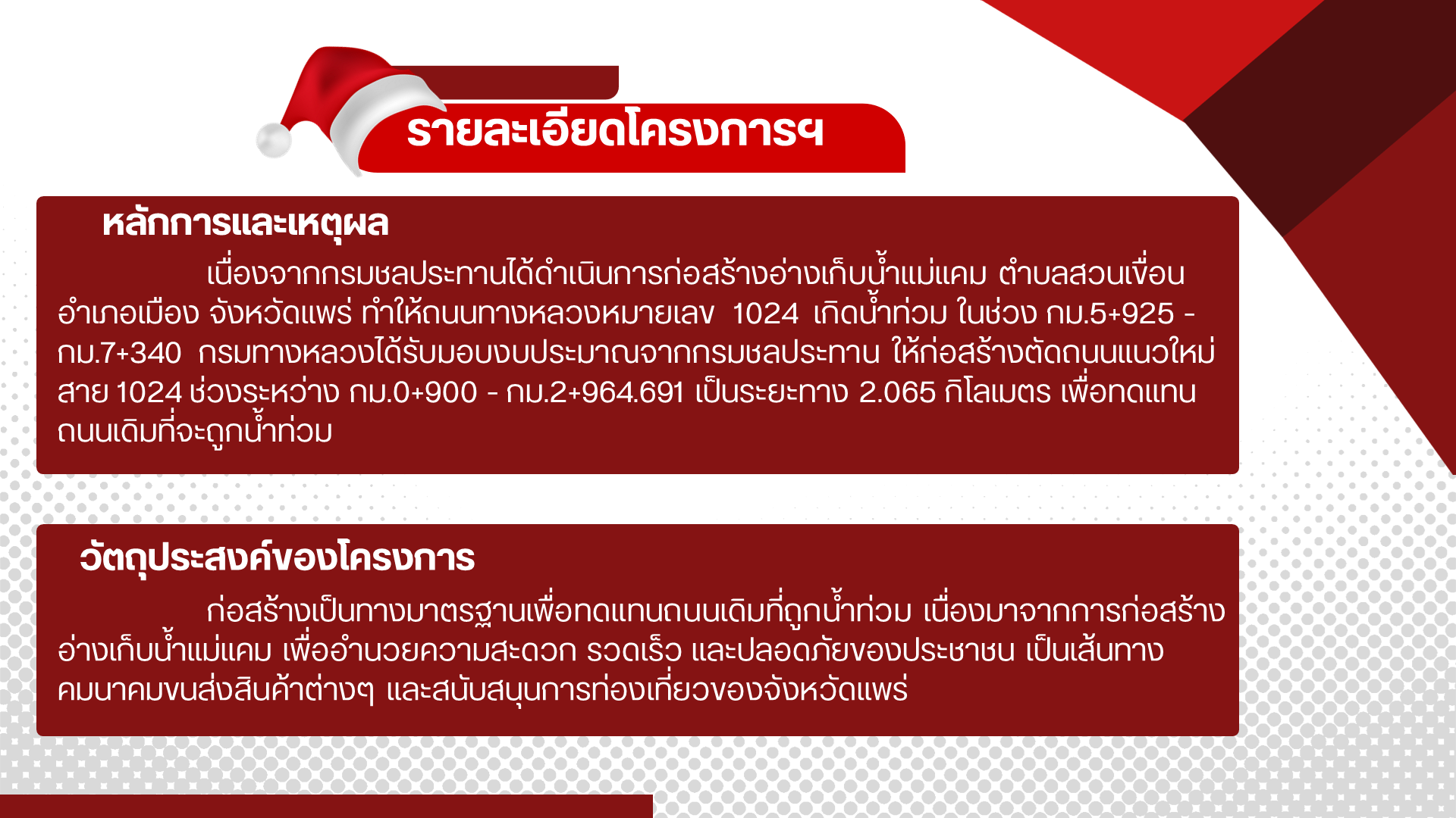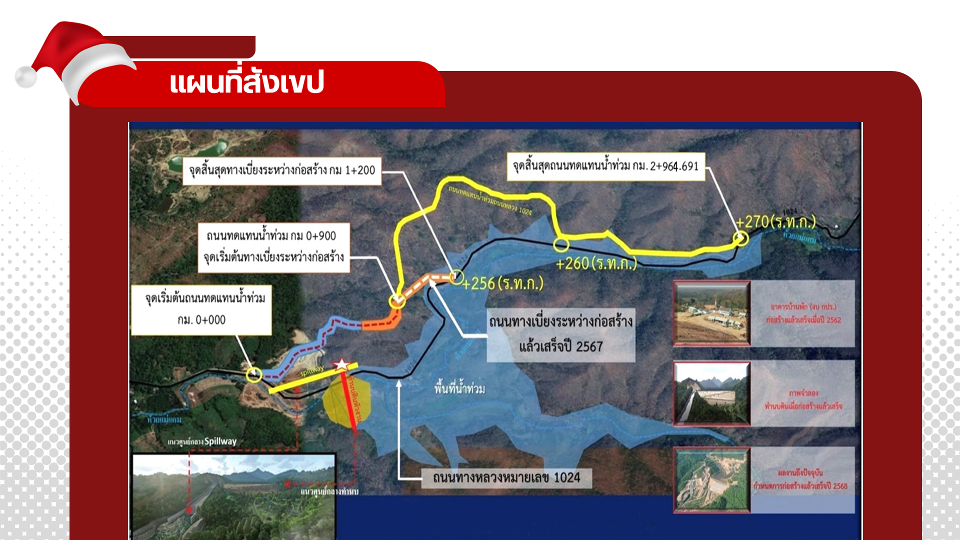 เนื้อหาเพจ : ทางหลวงหมายเลข 1024 อ่างเก็บน้ำแม่แคม อันเนื่องมาจากพระราชดำริ ถนนทดแทนน้ำท่วม (กรมชลประทาน)