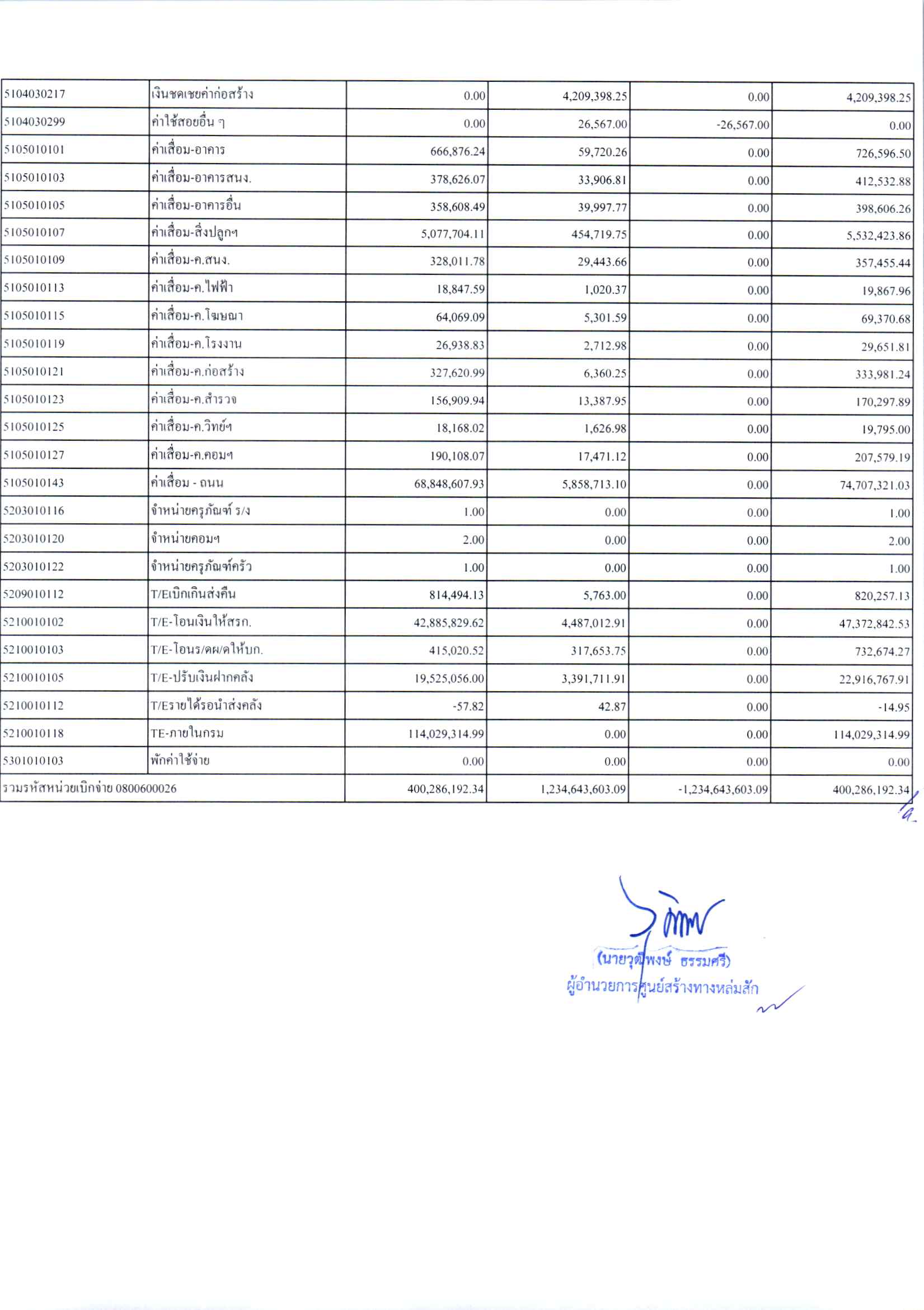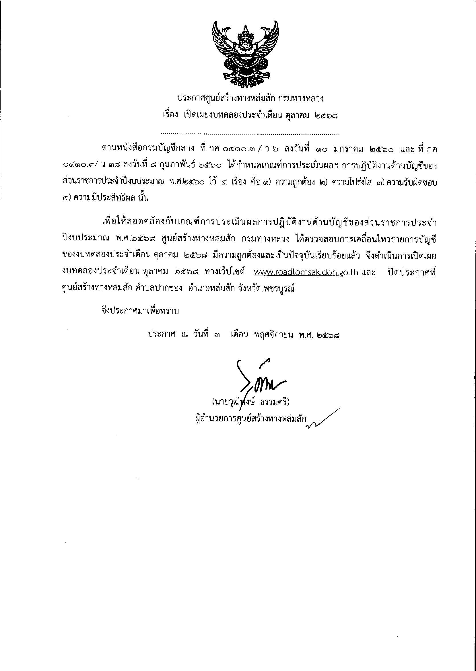 ประกาศเปิดเผยงบทดลองประจำเดือน ตุลาคม 2568 ปีงบประมาณ 2569