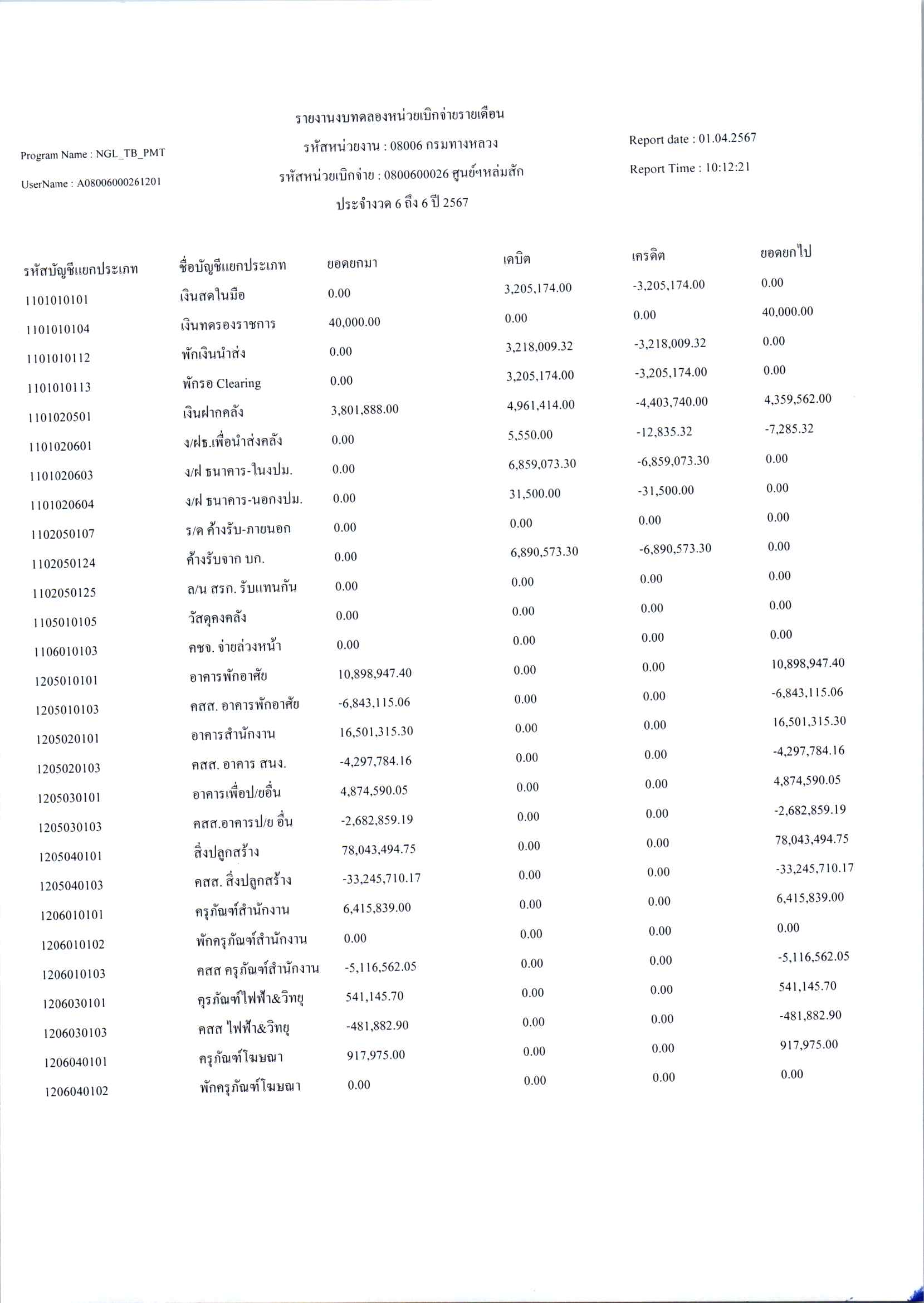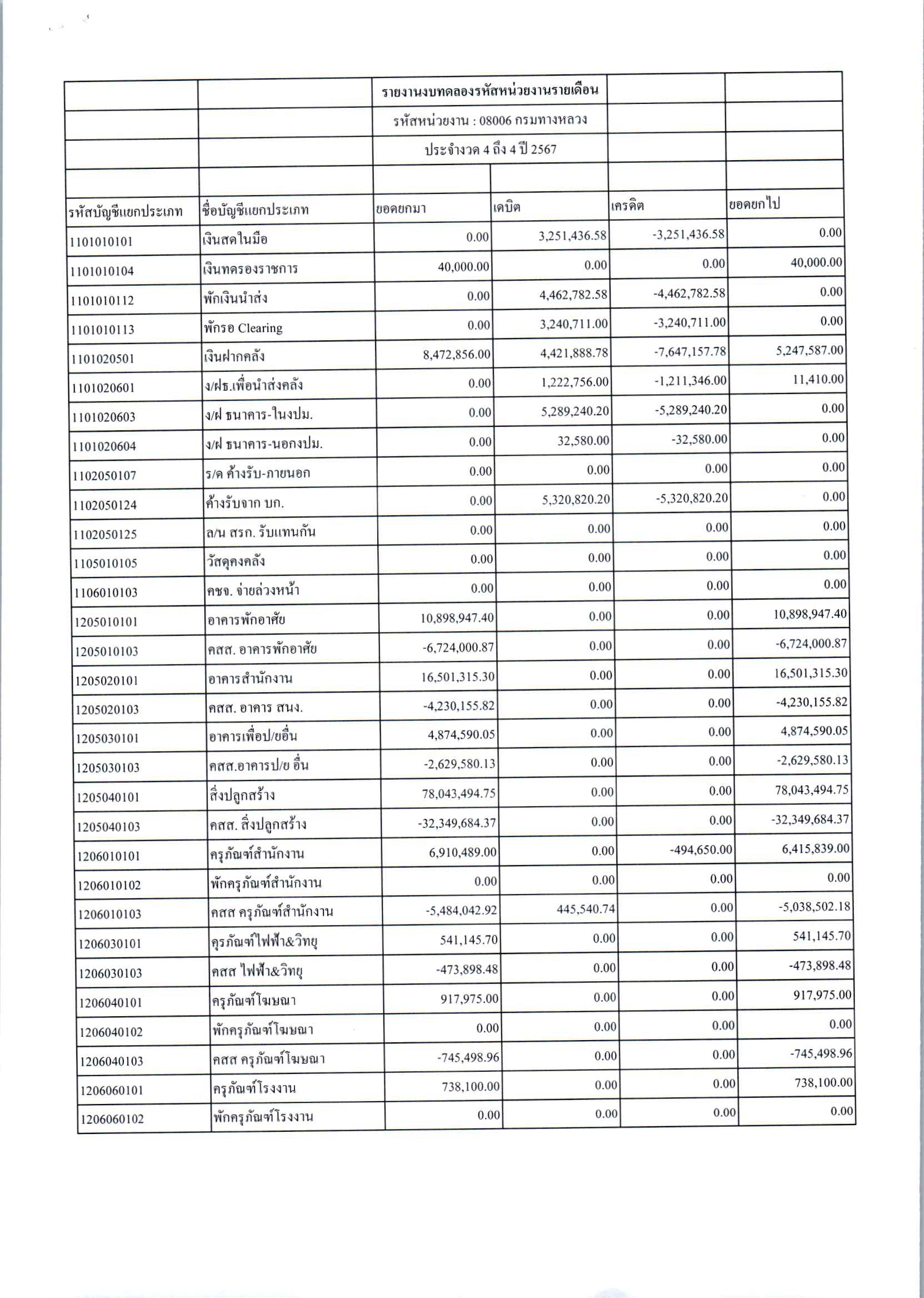 ประกาศเปิดเผยงบทดลองประจำเดือน เมษายน 2567 ปีงบประมาณ 2567