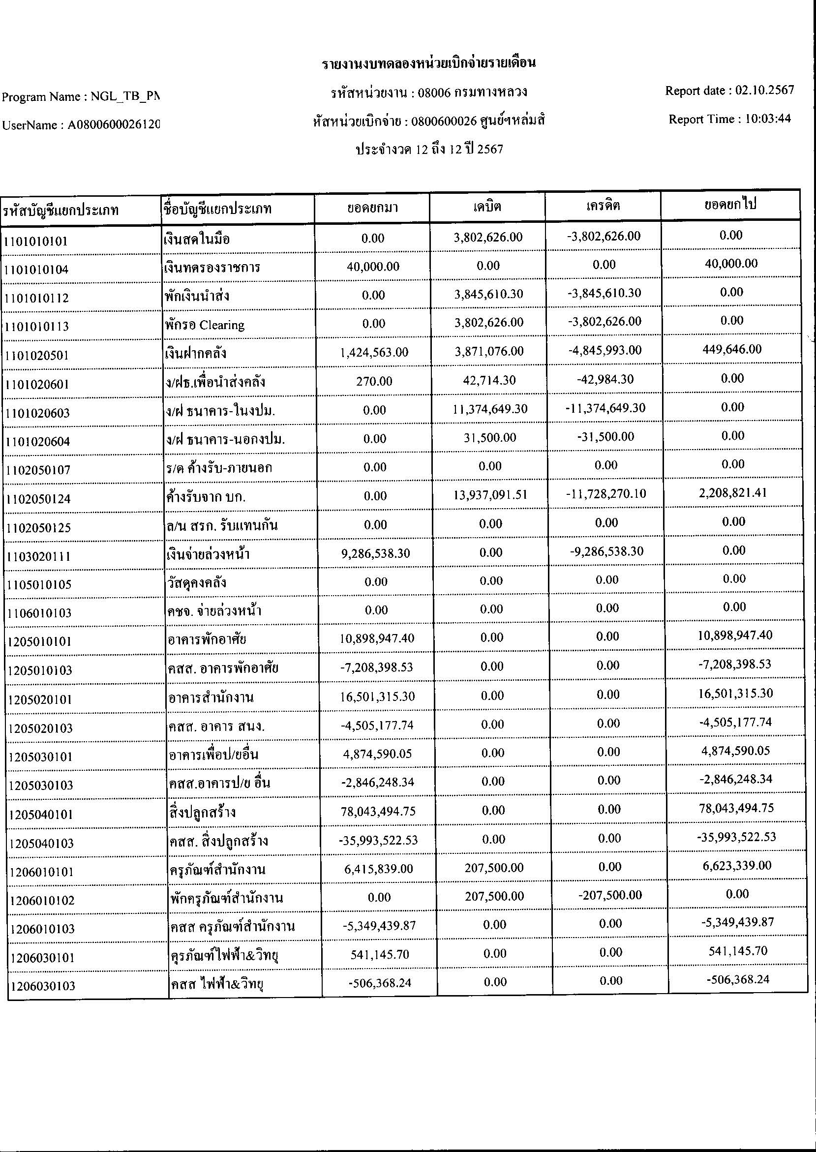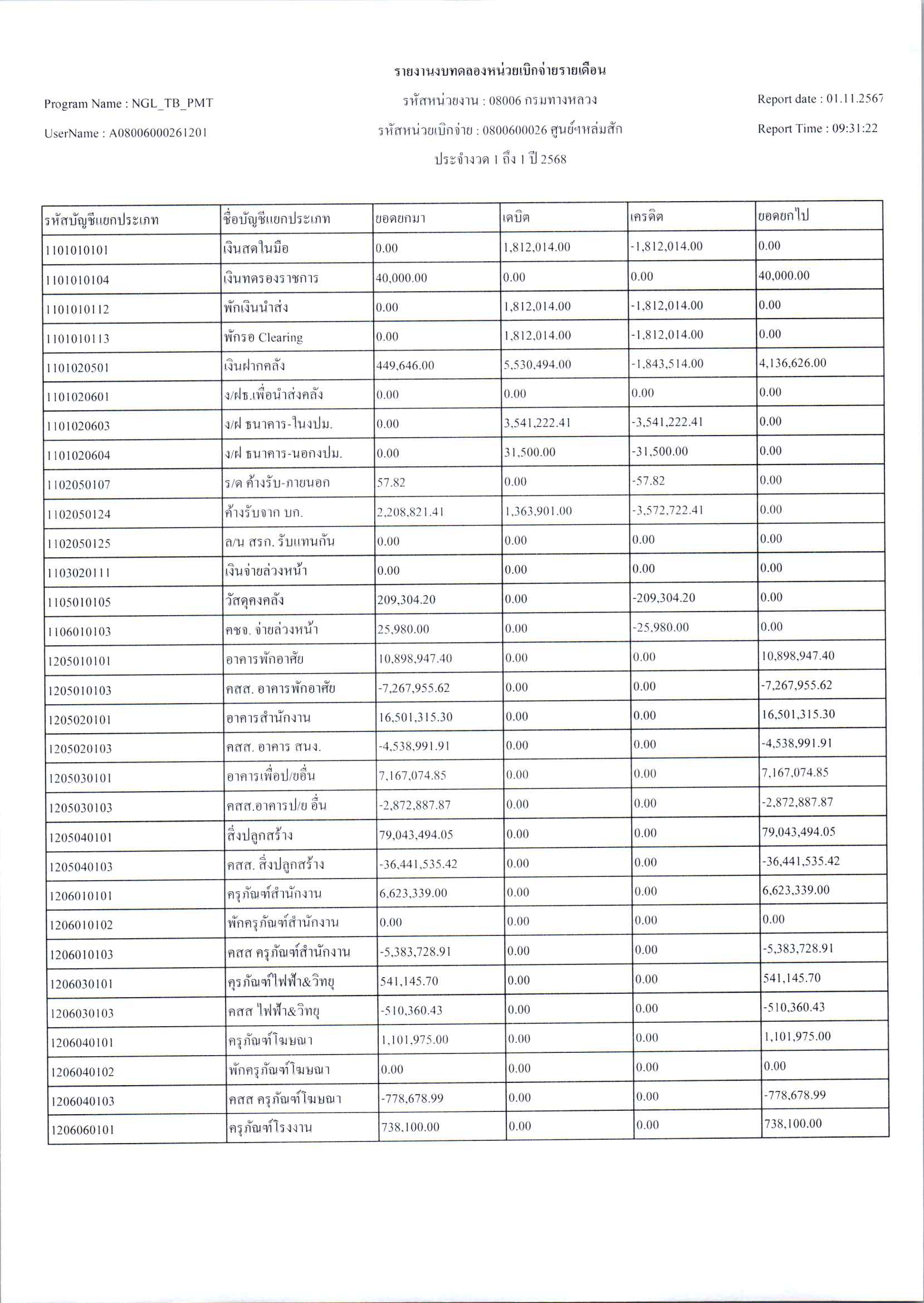 ประกาศเปิดเผยงบทดลองประจำเดือน ตุลาคม 2567 ปีงบประมาณ 2568