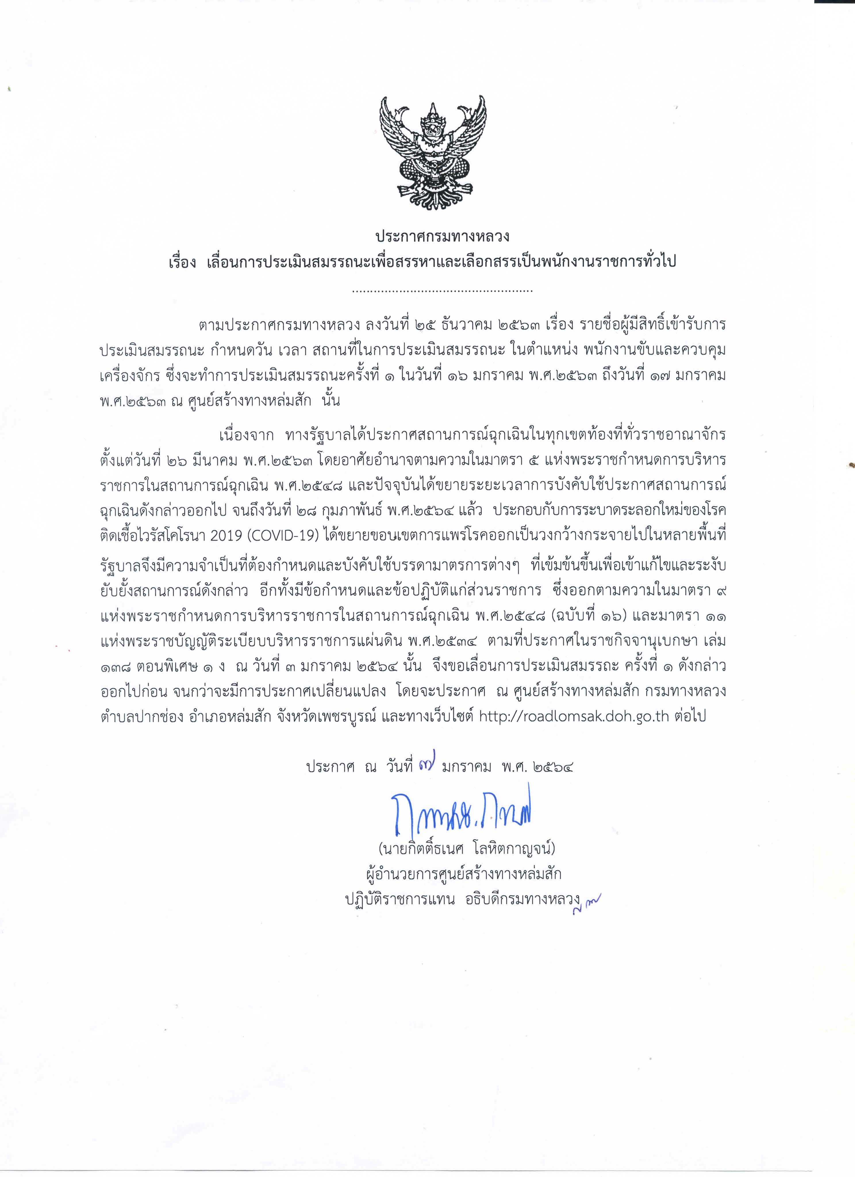 ประกาศเลื่อนการประเมินสมรรถนะเพื่อสรรหาและเลือกสรรเป็นพนักงานราชการทั่วไป