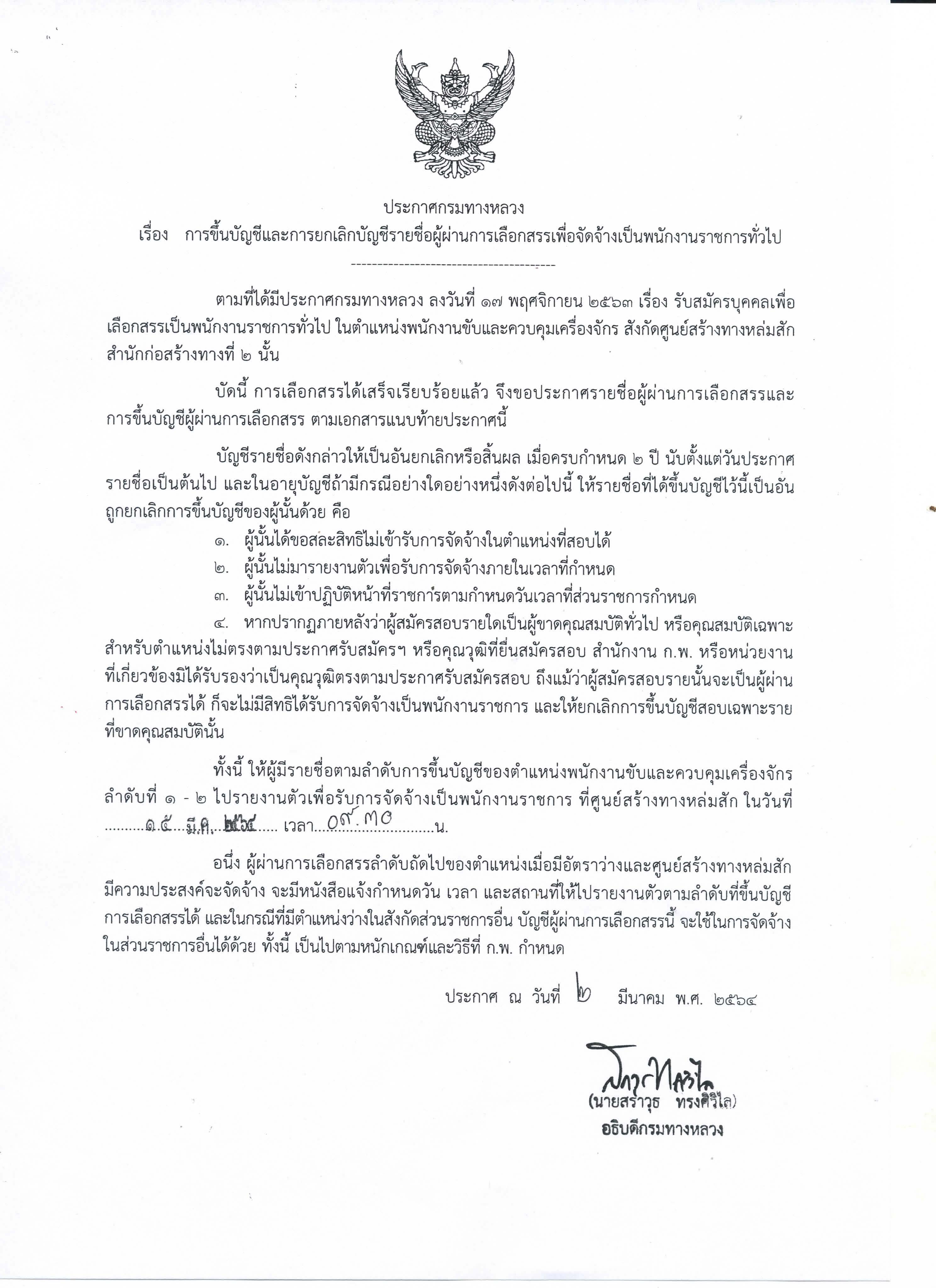 ประกาศการขึ้นและยกเลิกบัญชีรายชื่อผู้ผ่านการเลือกสรรเพื่อจัดจ้างเป็นพนักงานราชการทั่วไป