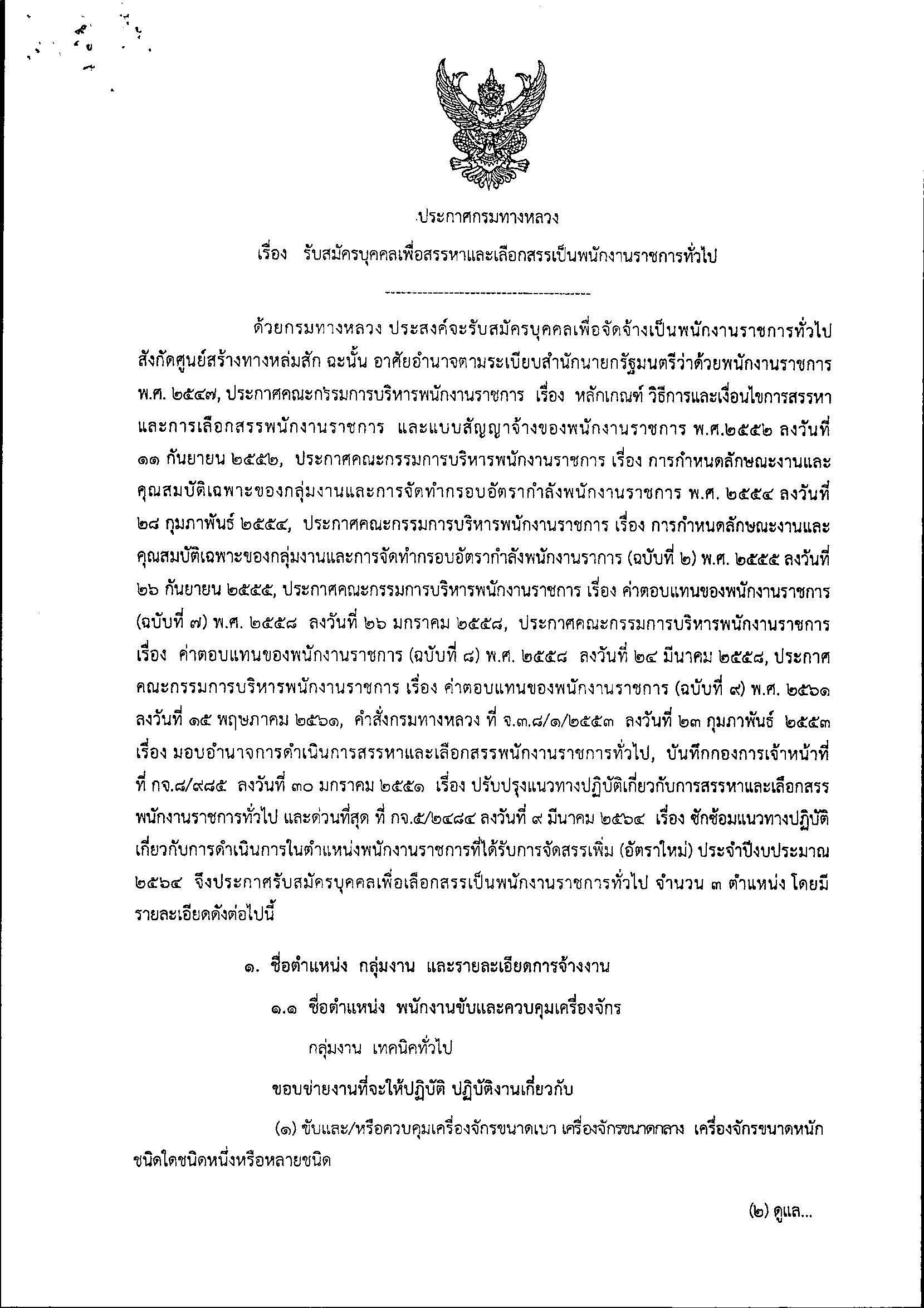 ประกาศรับสมัครบุคุลเพื่อสรรหาและเลือกสรรเป็นพนักงานราชการทั่วไป จำนวน 3 ตำแหน่ง พนักงานขับและควบคุมเครื่องจักร พนักงานเครื่องกล และ พนักงานบริการ
