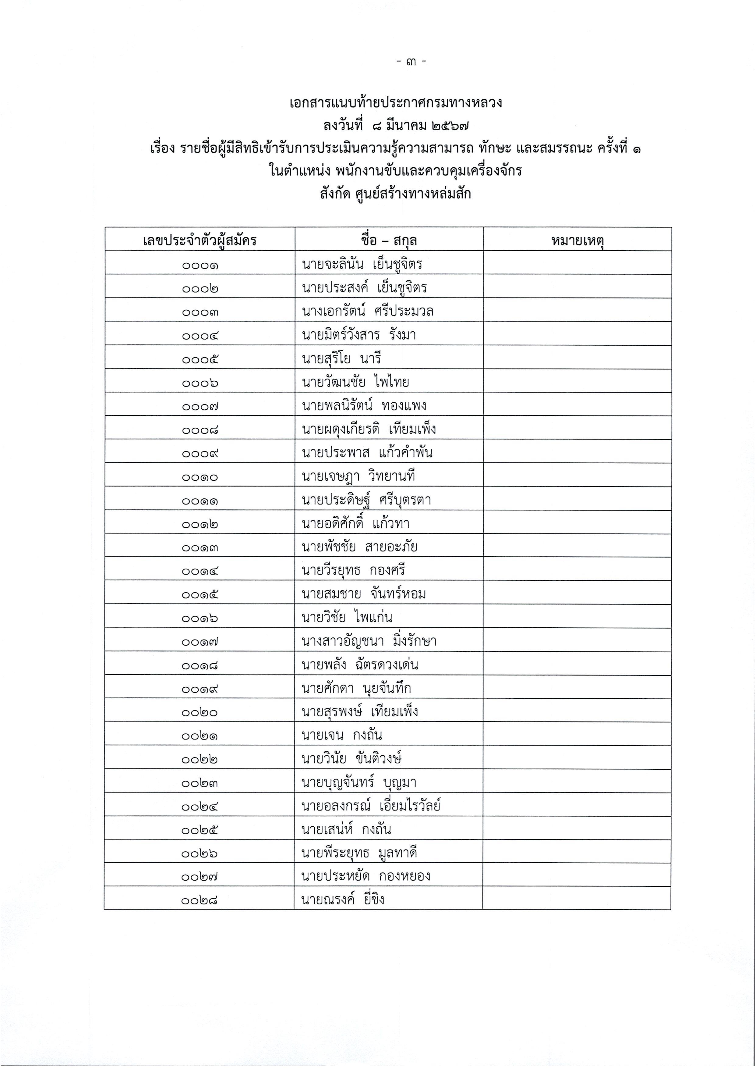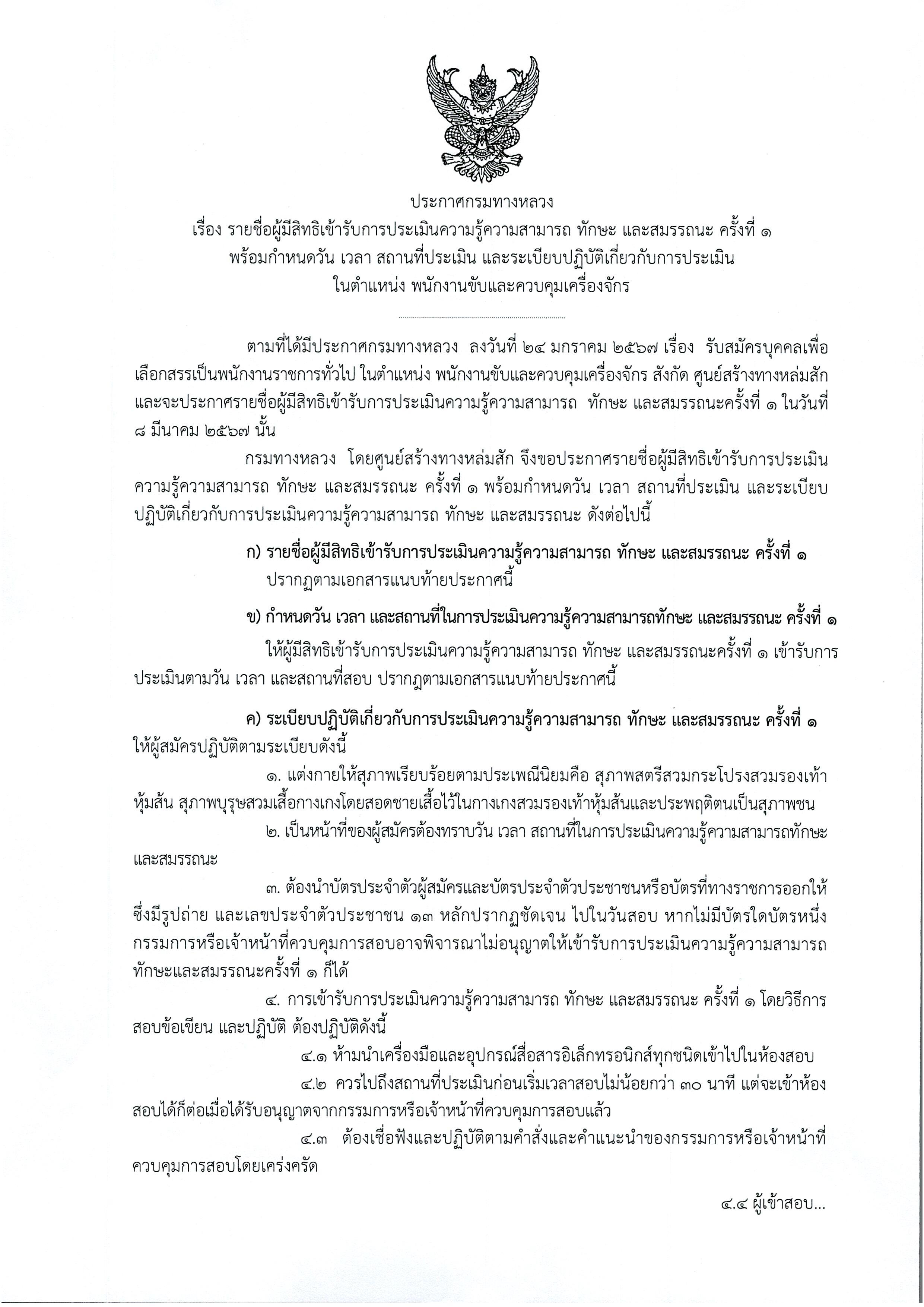ประกาศรายชื่อผู้มีสิทธิ์เข้ารับการประเมินความรู้ความสามารถ ทักษะและสมรรถนะ ครั้งที่1