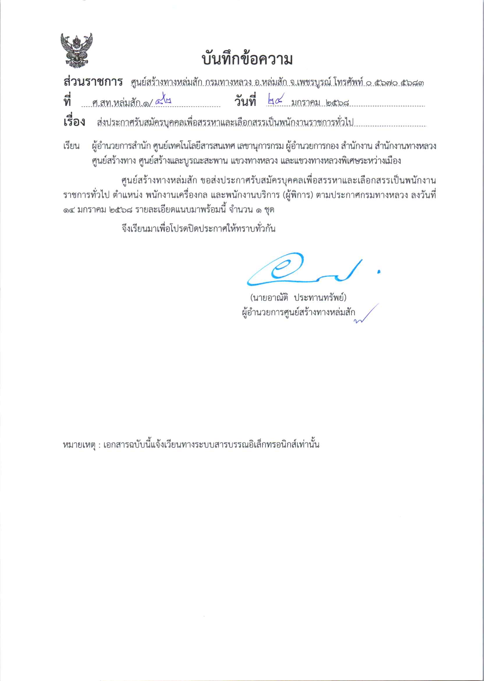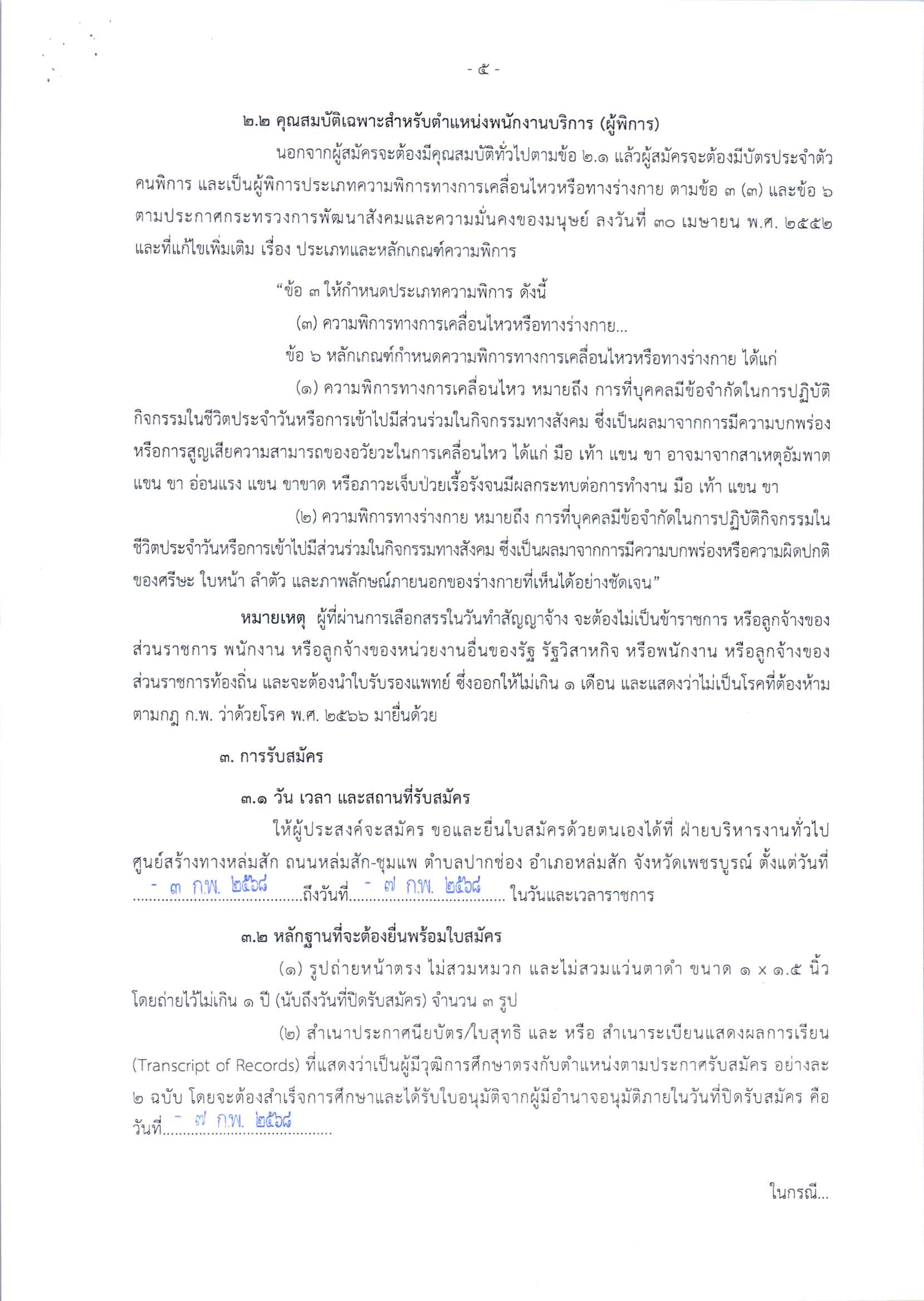ประกาศรับสมัครบุคคลเพื่อสรรหาและเลือกสรรเป็นพนักงานราชการทั่วไป จำนวน 2 ตำแหน่ง พนักงานเครื่องกล และ พนักงานบริการ (ผู้พิการ)