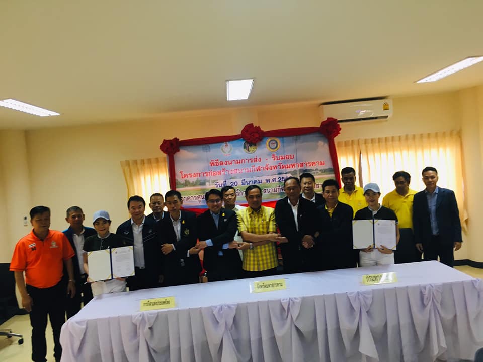 นายกิตติ์ธเนศ โลหิตกาญจน์ ผู้อำนวยการศูนย์สร้างทางหล่มสัก พร้อมด้วยนายสมหวัง อนุสรณ์ รองผู้อำนวยการศูนย์สร้างทางหล่มสัก และนายสาธิต อินนามเพ็ง วิศวกรโยธาปฏิบัติการ ได้เข้าร่วมพิธีลงนามการส่ง - รับมอบโครงการก่อสร้างสนามกีฬาจังหวัดมหาสารคาม ณ อาคารศูนย์วิทยาศาสตร์การกีฬา สนามกีฬาจังหวัดมหาสารคาม