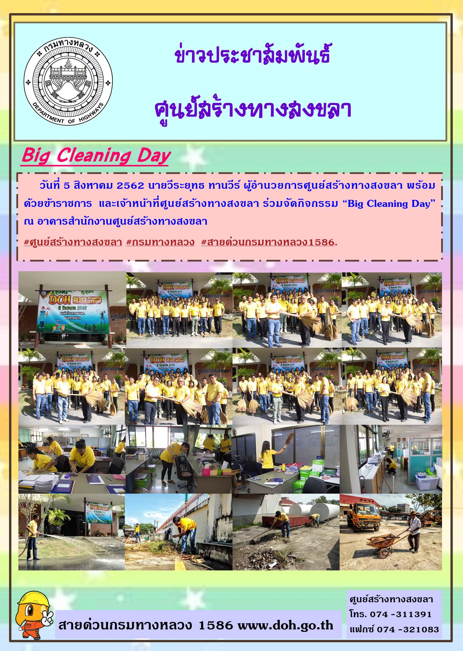 วันที่ 5 สิงหาคม 2562 นายวีระยุทธ ทานวีร์ ผู้อำนวยการศูนย์สร้างทางสงขลา พร้อมด้วยข้าราชการ และเจ้าหน้าที่ศูนย์สร้างทางสงขลา ร่วมจัดกิจกรรม “Big Cleaning Day” ณ อาคารสำนักงานศูนย์สร้างทางสงขลา